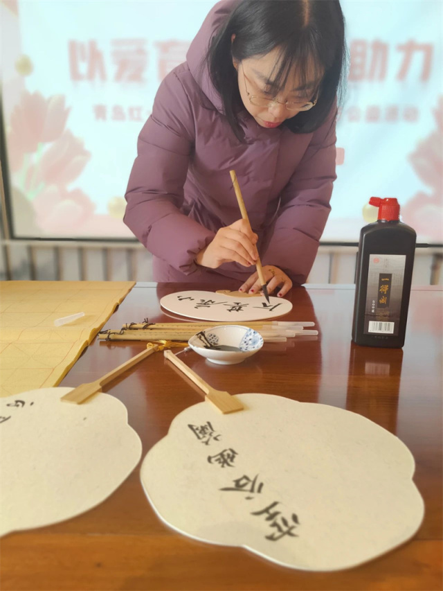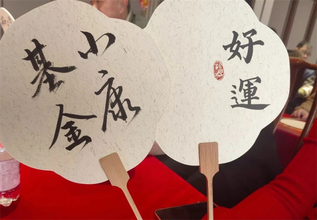 小康基金邀请北京师范大学书法硕士、女书法家邵艳老师现场挥毫泼墨,为在场的女性朋友送去了书法扇面。