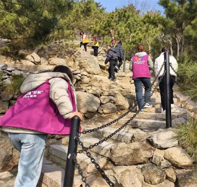 石老人观光园位置优越,拥有美丽的海滨风光、独特的山体景观。为丰富女性职工的文体生活,营造敢为人先的工作氛围,石老人社区组织妇女职工开展登山活动。
