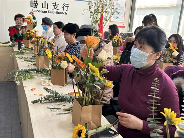 3月6日上午,山水名园社区举办妇女节插花活动,邀请共建单位的花艺老师讲授插花技巧,并教居民制作花篮。修剪、搭配、纤插,大家现学现用,制作出了一个个花团锦簇、独具匠心的传统花艺作品。