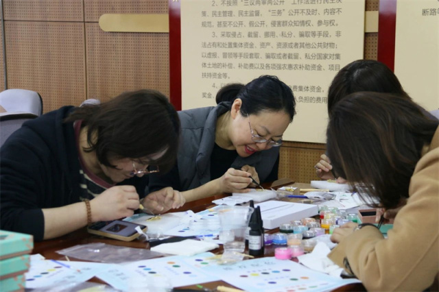 3月8日上午,青岛市崂山区金家岭街道妇联开展以“聚‘金’帼力量 绽时代芳华”为主题的珐琅首饰手工制作活动。街道各部门及管区女性工作人员与珐琅来了一场浪漫“邂逅”。活动邀请专业人员从珐琅的起源发展、工艺、特点及制作过程等方面详细介绍了珐琅,让大家系统全面地了解这项古老又美丽的工艺。随后,大家开始动手制作专属于自己的珐琅首饰。固定、调色、点蓝……精雕细琢中,一个个五彩斑斓的珐琅首饰应运而生,为节日增添了一抹靓丽色彩。