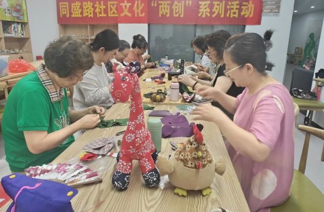 在手工拼布活动中,居民们在老师的耐心指导下,逐渐掌握了针法技巧,沉浸于手工制作的乐趣之中。一块块布料在居民们灵巧的双手下,变成了一只只栩栩如生、憨态可掬的长颈鹿,不仅展示了居民们的创造力,也进一步加深了邻里间的情感联系。