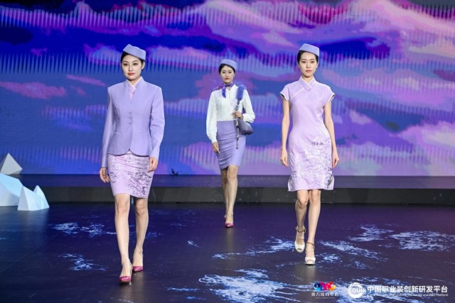 提起对职业装的第一印象,大多是沉稳和干练。然而此次大秀别出心裁,透过静态展示和动态走秀相结合的方式,充分展示了职业装的科技感、时尚感和未来感,随着秀场灯光变幻打造出一场行云流水的秀演,全场赞叹,观众在一场视觉盛宴中感受到了中国职业装的独特魅力与自信。