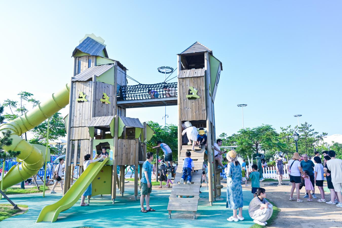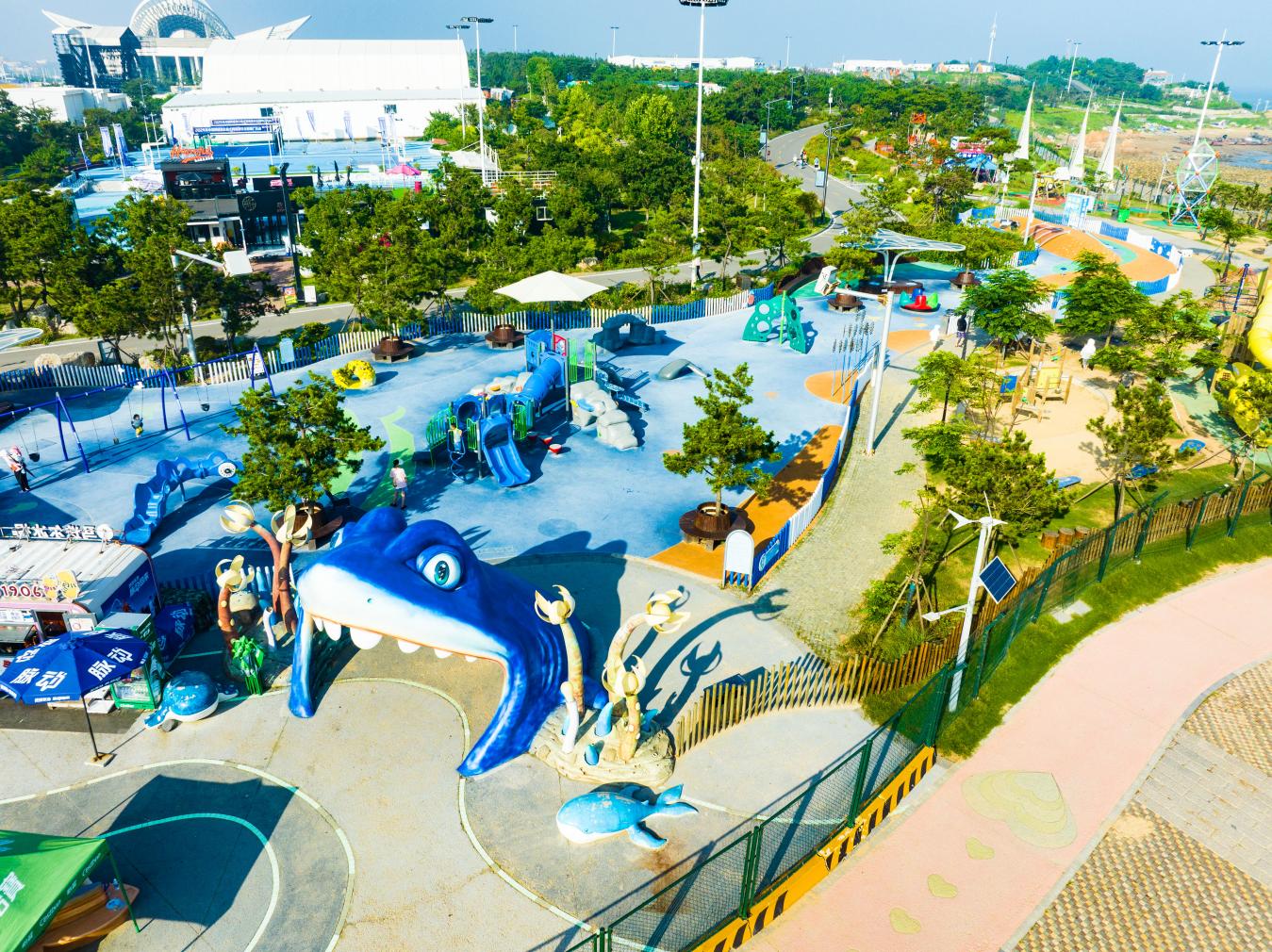 非动力儿童游乐场是集儿童游乐、探险、休闲为一体的青岛地区最大的室外非动力游乐场,分布在一湾倾心·爱情海湾和凤凰里休闲美食街区。这里有小蓝鲸探索攀爬、河豚钻筒、海底礁石攀岩钻筒组合、大型森林主题滑梯、摇摆帆船、三人旋转秋千等丰富有趣的游乐设施。孩子们在这个海边游乐场感受着海风的轻拂,玩得不亦乐乎。