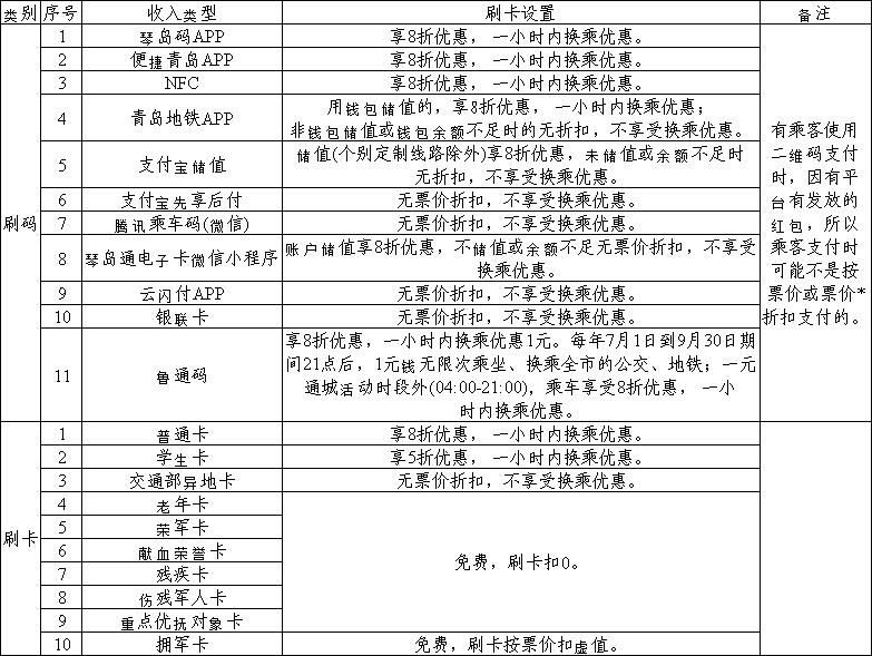 票价:1元,刷码、刷卡扣费折扣及换乘优惠明细如下: