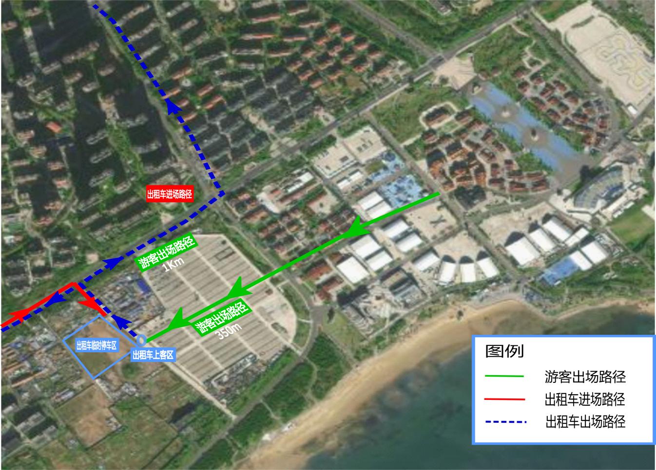 巡游出租汽车运行路线:一是交通管制期间,由罗浮山路或青云山路向左经银沙滩路进入P1停车场西侧物流通道临时停靠点。二是常态化交通管控期间,①由天目山路向右经银沙滩路进入P1停车场西侧物流通道临时停靠点;②由罗浮山路或青云山路向左经银沙滩路进入P1停车场西侧物流通道临时停靠点;③由嘉陵江东路向右经金沙滩路、银沙滩路进入P1停车场西侧物流通道临时停靠点。