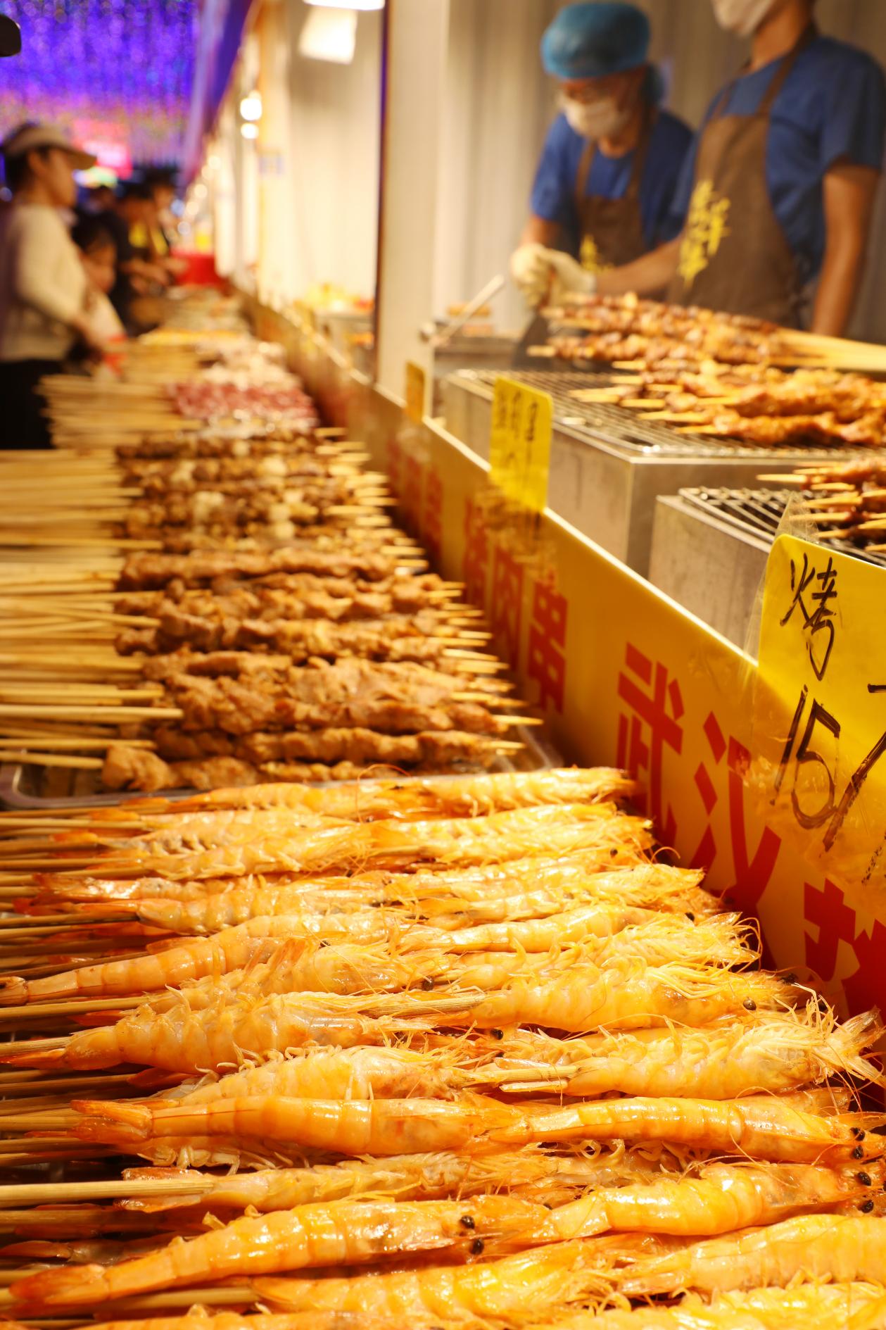 夜市入口处,市民游客络绎不绝。首批入驻的商户们涵盖多元业态:青岛本地老字号摊位前,烤鱿鱼、青岛大虾、海菜包子的香气引得食客排起长队;文创手作区里,年轻摊主用贝壳拼贴城市造型摆件,手绘啤酒节主题的帆布袋,兼具地域特色与设计感;亲子互动区的彩绘、手工陶艺体验,不时传来孩子们的欢呼。
