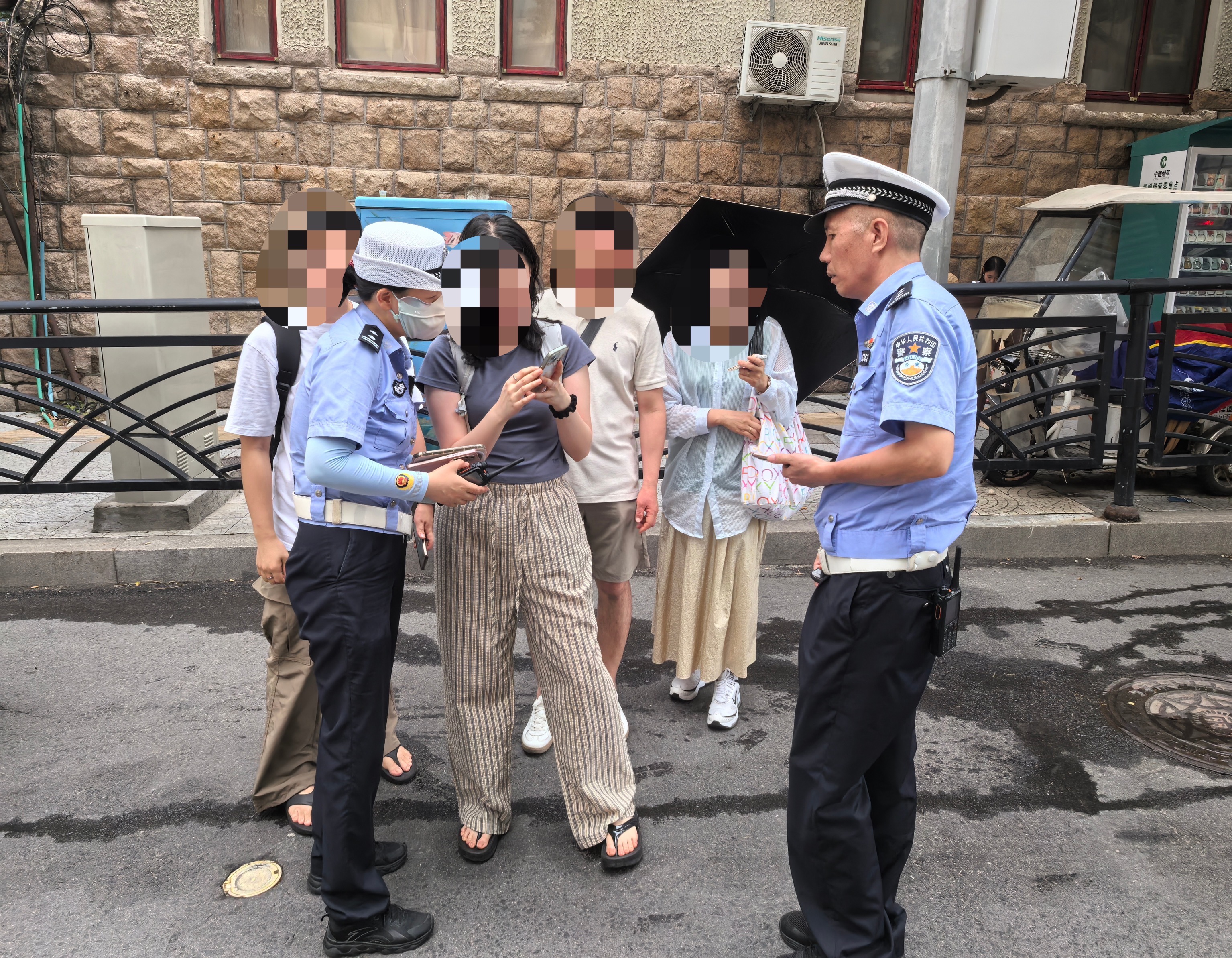 7月20日上午10时30分许,青岛市公安局交通管理支队市南区大队火车站中队民警韩通科、黑红光在上街里啤酒节会场周边执勤时,遇到四名来青游客焦急求助。游客称,他们从住宿酒店打车至湖北路宁阳路路口后,发现手机遗落在出租车上,十分着急。