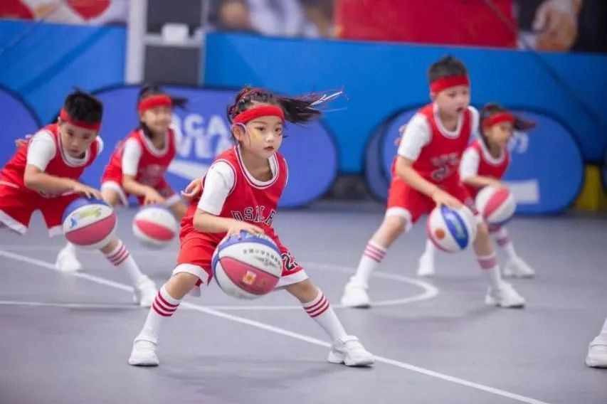 在动感的音乐节奏中,小运动员们手持篮球,时而快速运球穿梭,时而高高抛球旋转,每一个动作都充满力量与美感,每一次配合都默契十足,让观众感受到篮球运动的别样魅力!