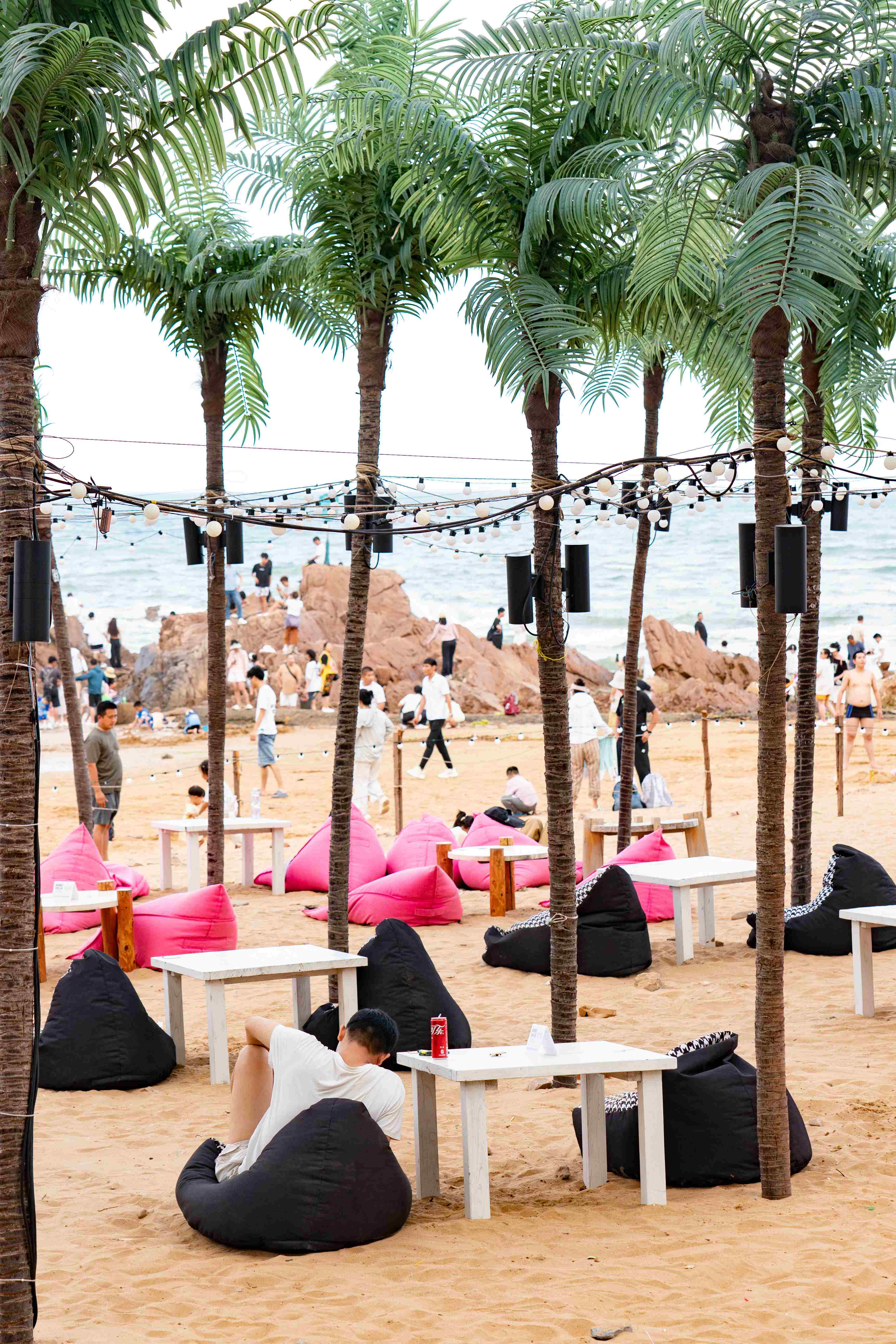 如果说凤凰夜市带来了烟火气,走进M&Z Beach Club沙滩打卡区,仿佛一秒切换至海岛度假场景。