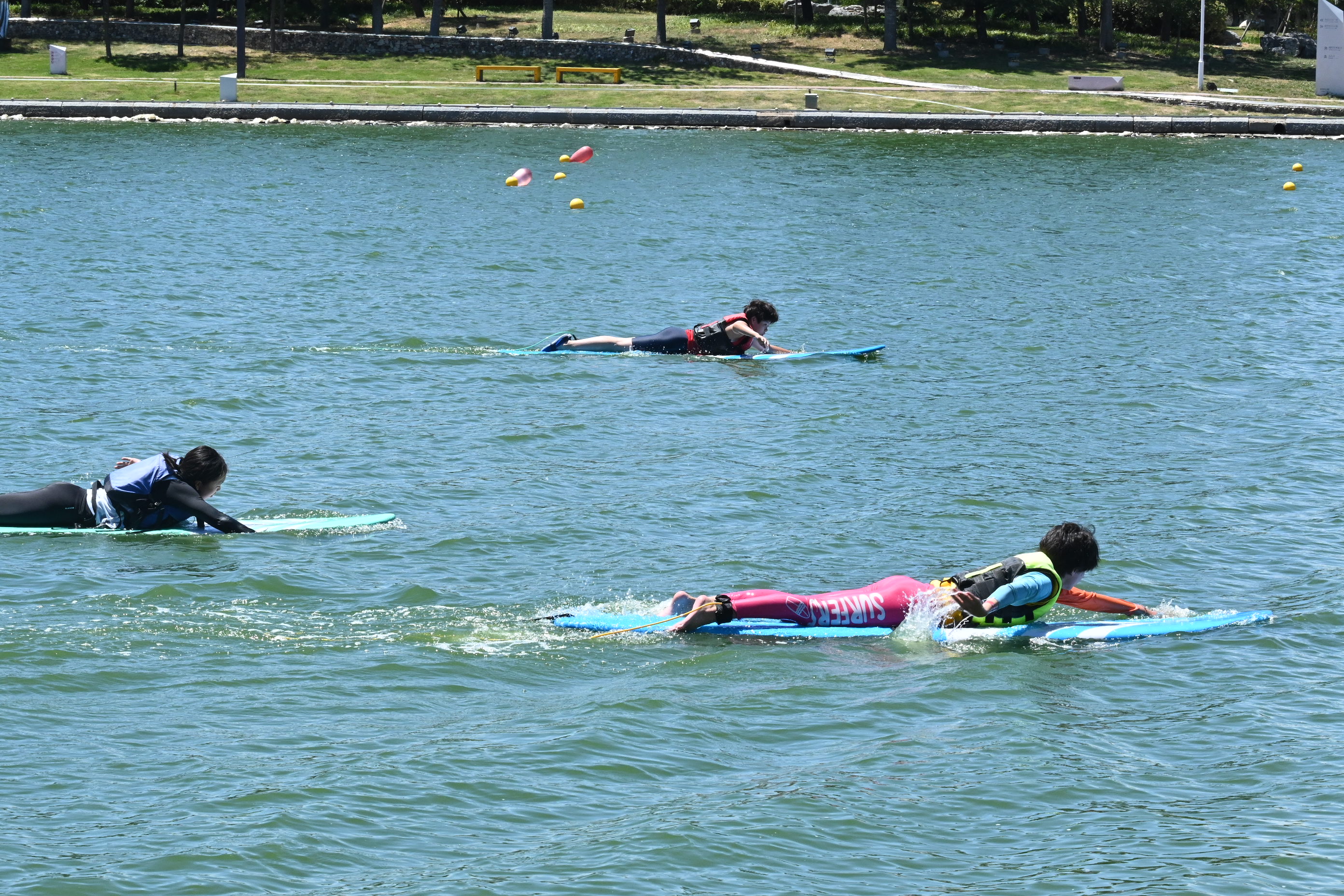 本次比赛受运动员年龄段限制,比赛形式为比拼冲浪核心基本功的冲浪板划水竞速。小运动员们在比赛中奋力挥臂划水,争分夺秒,努力向终点冲刺,展现了极高的适应能力和拼搏精神,充分诠释了体育运动的魅力。经过紧张激烈的角逐,最终, 市南区、城阳区、即墨区分别荣获团体总分前三名; 即墨区、崂山区、平度市代表队。则凭借良好的赛风赛纪荣获“体育道德风尚奖”代表队称号。