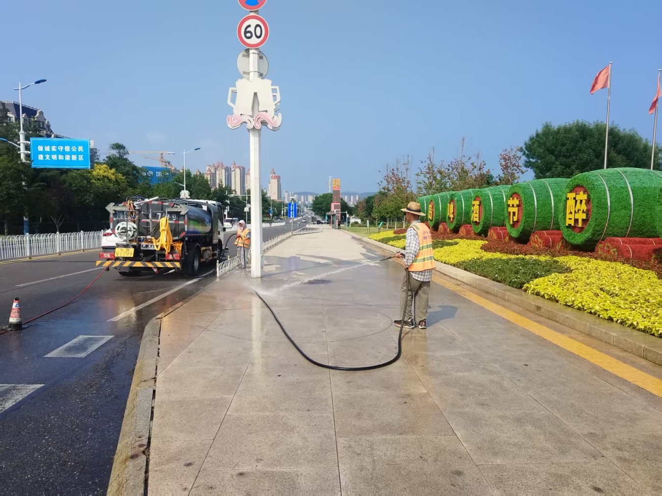 作为主会场的西海岸新区,调配9台清扫车、9辆冲水车,增配150名道路保洁人员,强化对滨海大道、金沙滩路、银沙滩路等会场周边道路的保洁力度。除每日7:00前完成会场周边垃圾集中清运外,在5:00-23:00期间,专项安排3辆收运车对啤酒城进行循环清运,做到垃圾随产随清,避免出现垃圾积存问题,杜绝污水撒漏污染路面。会场增设2台大巴移动公厕,区域内5座公厕保洁人员增加到20名,切实提高公厕保洁水平和服务质量。