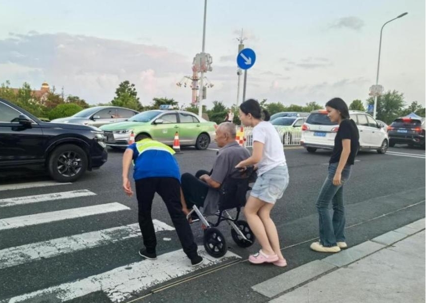 “阿姨,东1路公交站就在前面50米,直达地铁站。”“停车场满了?您沿这条路开500米,路南还有个大型停车场。”“您定位的位置在天目山路上,向西直行200米...”执勤人员早已熟记了啤酒城周边的交通信息,耐心细致地解答游客询问。遇到坐轮椅的老人,他们就主动上前帮忙推轮椅、下台阶,直到老人安全通过马路。