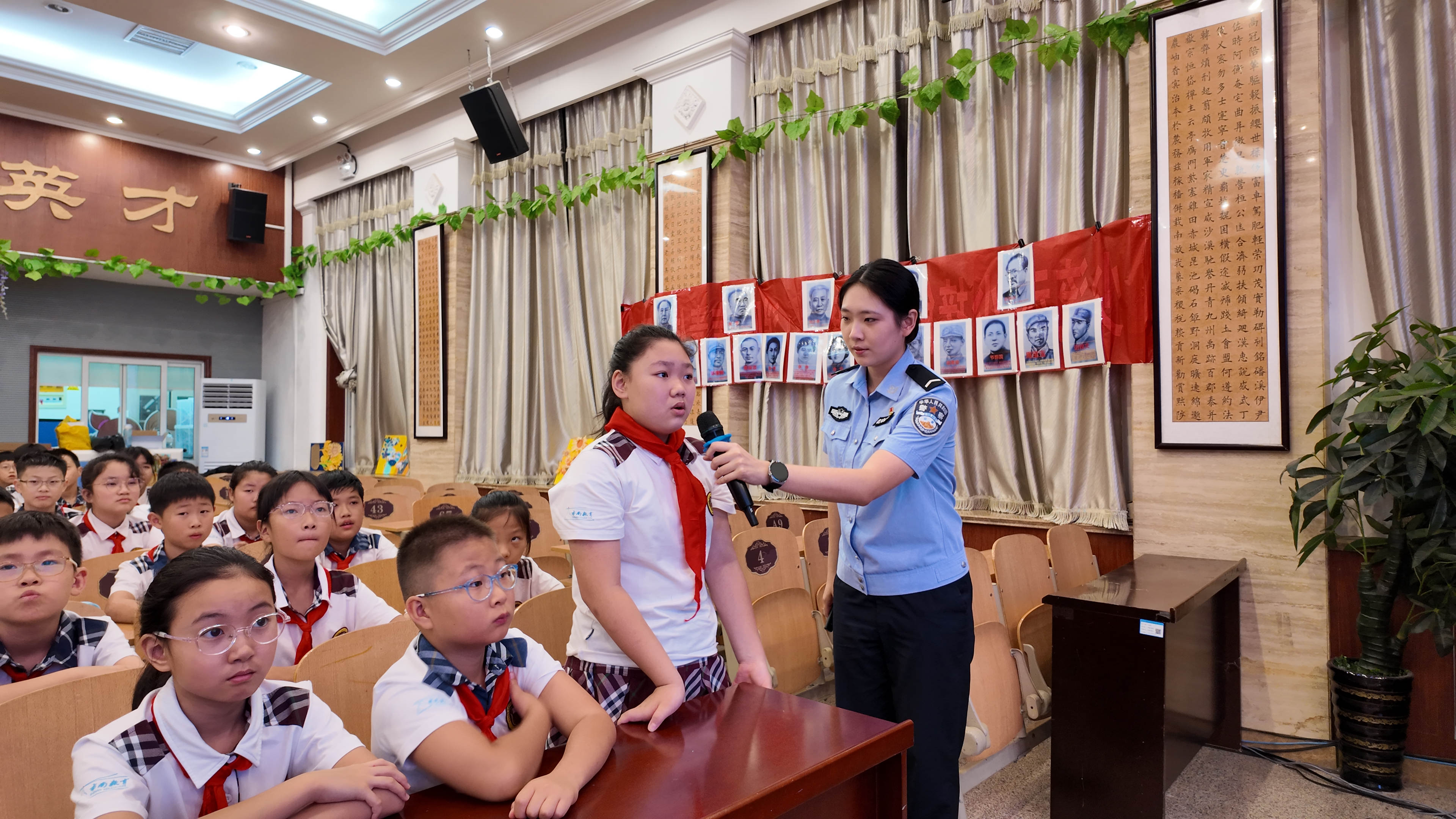 不同于传统的“照本宣科”,李研结合日常工作中处置过的未成年人被诱骗刷礼物、赠送主角装备和皮肤骗局、网上陌生人员搭讪等真实案例,用“讲故事+情景模拟”的方式,拆解防范网络诈骗、网络暴力等安全知识点。“如果陌生人说‘加微信可低价换游戏皮肤’,该做什么?”她抛出问题后,学生们纷纷举手抢答,课堂气氛热烈。对于回答正确的小学生,李研给他们送上了警察文创纪念品。