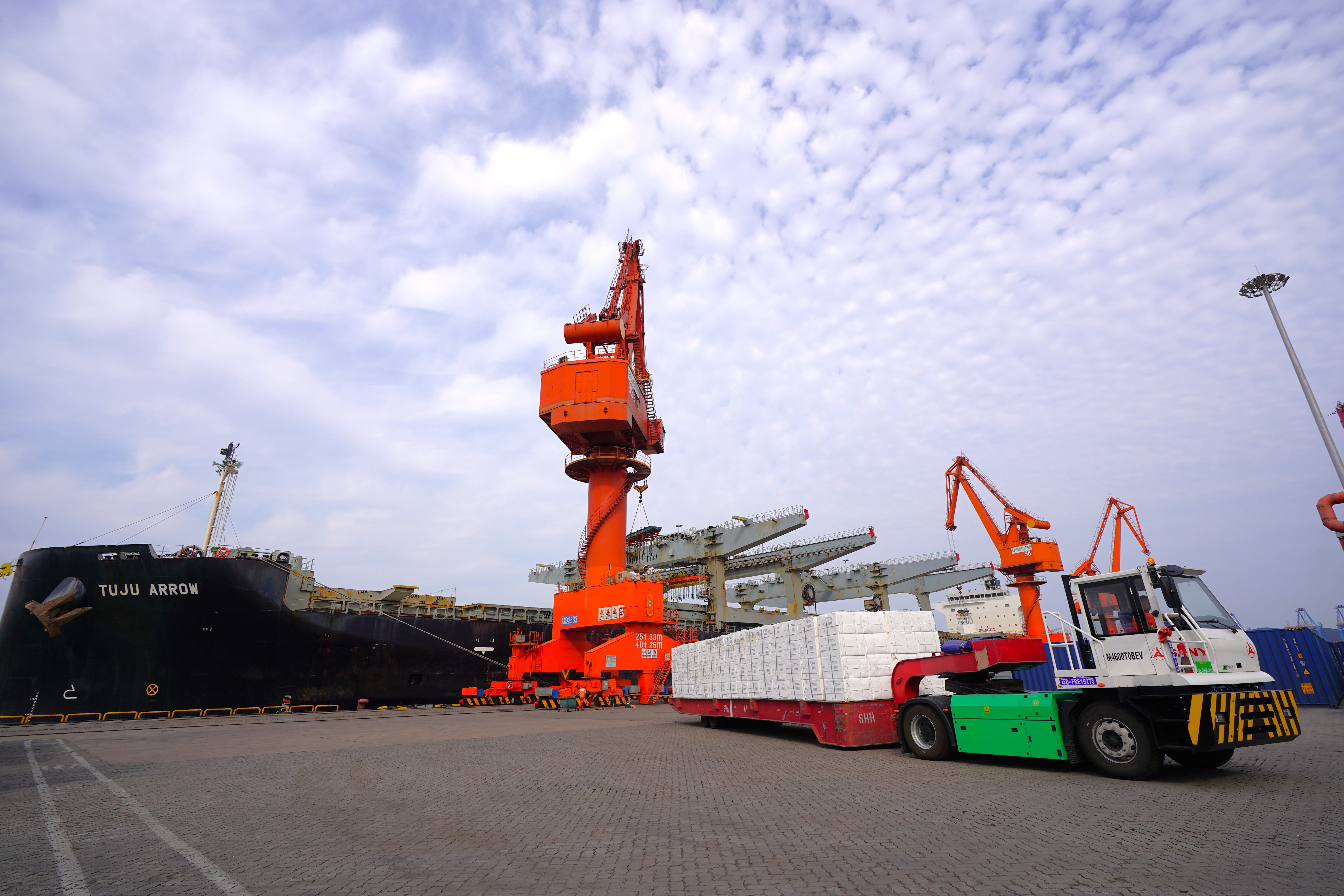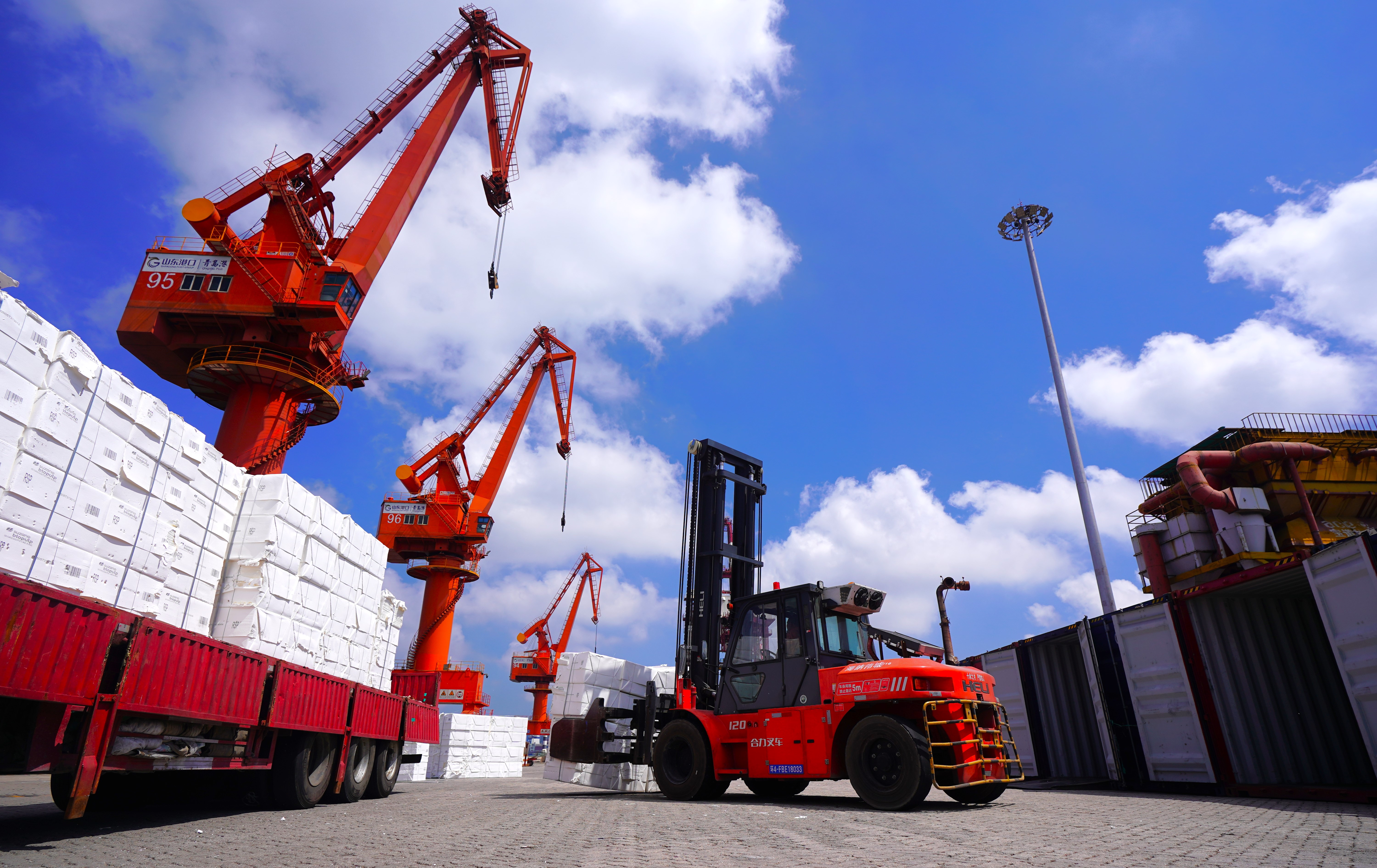 “通常纸浆都是通过汽车运输到达我们的工厂,受路途远、环节多等因素影响,易发生原料供应不足现象,青岛港提供的全新运输模式,解决了我们的实际困难!”纸浆客户相关负责人的感慨,道出了海铁联运高质量发展的成效。截至目前,青岛港已,常态化开行“青岛—兖州、新疆”等多条线路,源源不断将纸浆运往全国各地。