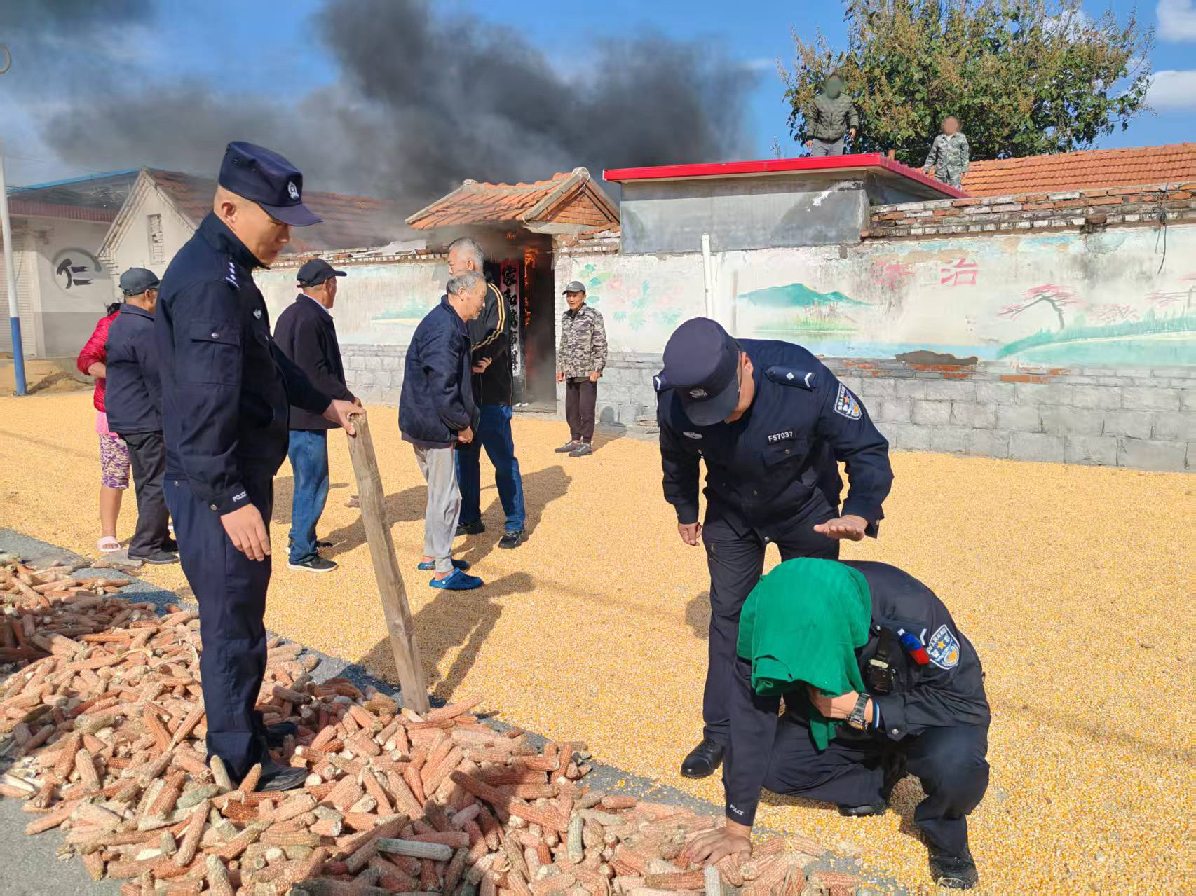 2025年10月21日10时7分许,莱西市公安局龙水路派出所社区民警王太雷和辅警张吉信、王磊、李荣栋在辖区某村走访时,突然发现村中不远处冒出滚滚浓烟。四人见状立即奔赴现场查看情况,只见一名村民家中起火,浓烟从屋中不断涌出。