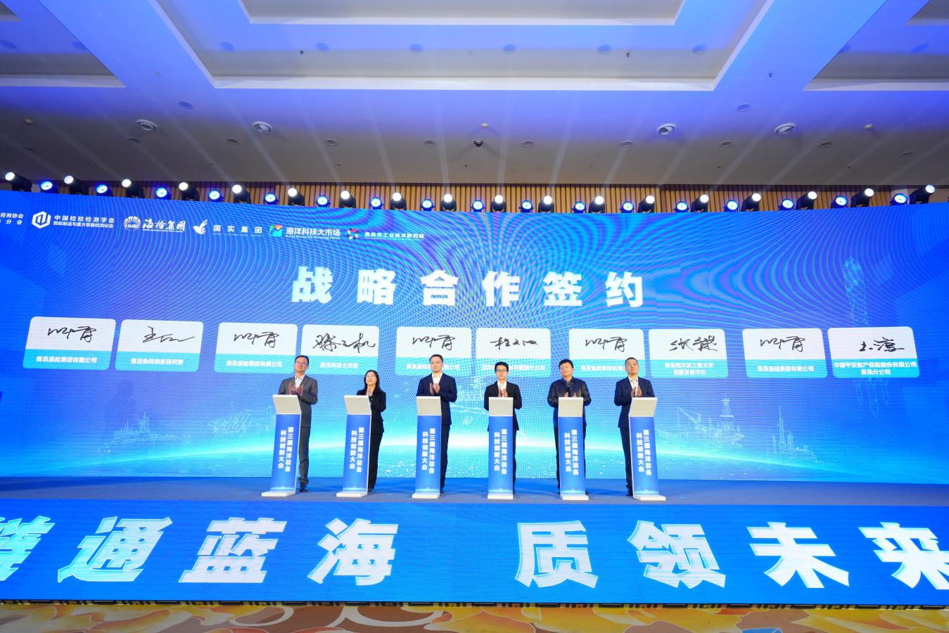会上,海检集团与青岛协同创新研究院、海洋科技大市场、武汉船用机械有限责任公司、青岛哈尔滨工程大学创新发展中心、中国平安财产保险股份有限公司青岛分公司签署战略合作协议。各单位将发挥各自平台技术优势合作共享、攻坚克难,共同为海洋装备产业发展贡献力量。