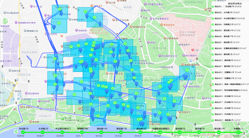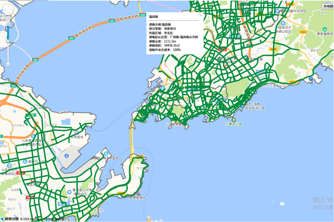 针对道路保洁质量监管需求,系统构建“作业追踪+水量分析+智能预警”专项模块,自动采集作业数据,智能核算工作量,不仅实时监管作业频率、轨迹等基本作业信息,更通过车辆加水行为智能分析,自动研判带水作业情况,对未达标作业情况精准预警,强化细节监管。“以往人工巡查调度,效率受限;如今系统实时呈现车辆路线、用水量,动态分析后自动预警,我们定向开展现场抽查,监管效率大幅提升,作业质量也同步改善。”青岛市环境卫生发展中心杨工介绍,“面对暴雨、低温等气象波动,系统还能及时提醒调整作业方案,实现灵活调度,提升作业安全性与适时性。”