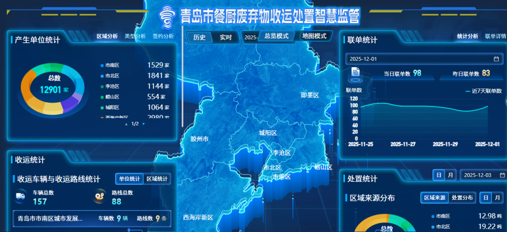 聚焦生活垃圾收运“规范提质”,智慧环卫监管系统实现城乡全域覆盖:城乡2.5万个收运点位精准落图,1380辆收运车辆轨迹实时可查,1378条收运线路全程监控,80余座转运站及处理设施分级监管,1.29万家餐饮单位线上签约动态管理,在全省率先达成城乡生活垃圾收运处置全流程智慧监管,构建“定时、定点、定车、定线”的“公交式收运”模式。“现在倒垃圾像查公交APP一样方便!”市北区某物业小区张经理说,“手机上就能查看收运车实时位置和到站时间,不用再长时间等候。”