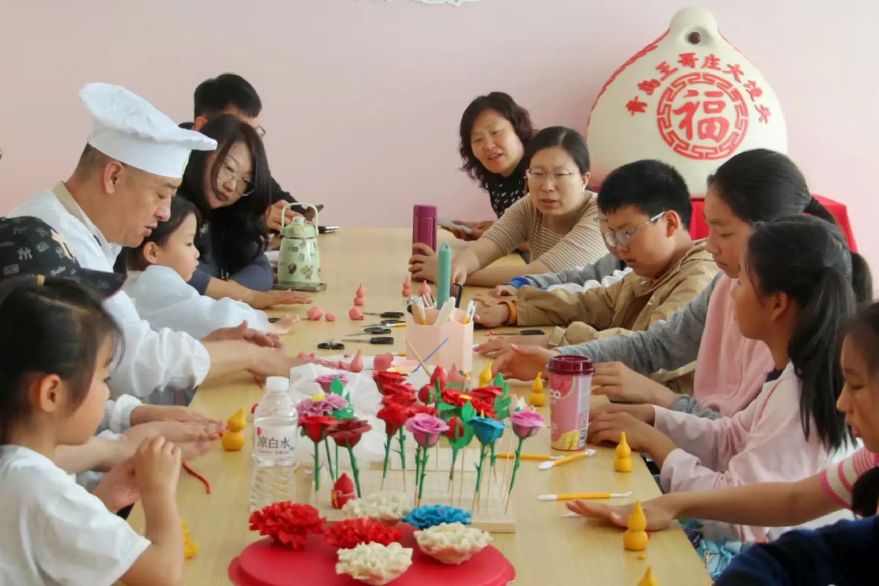 亲子家庭动手体验花样馒头制作。