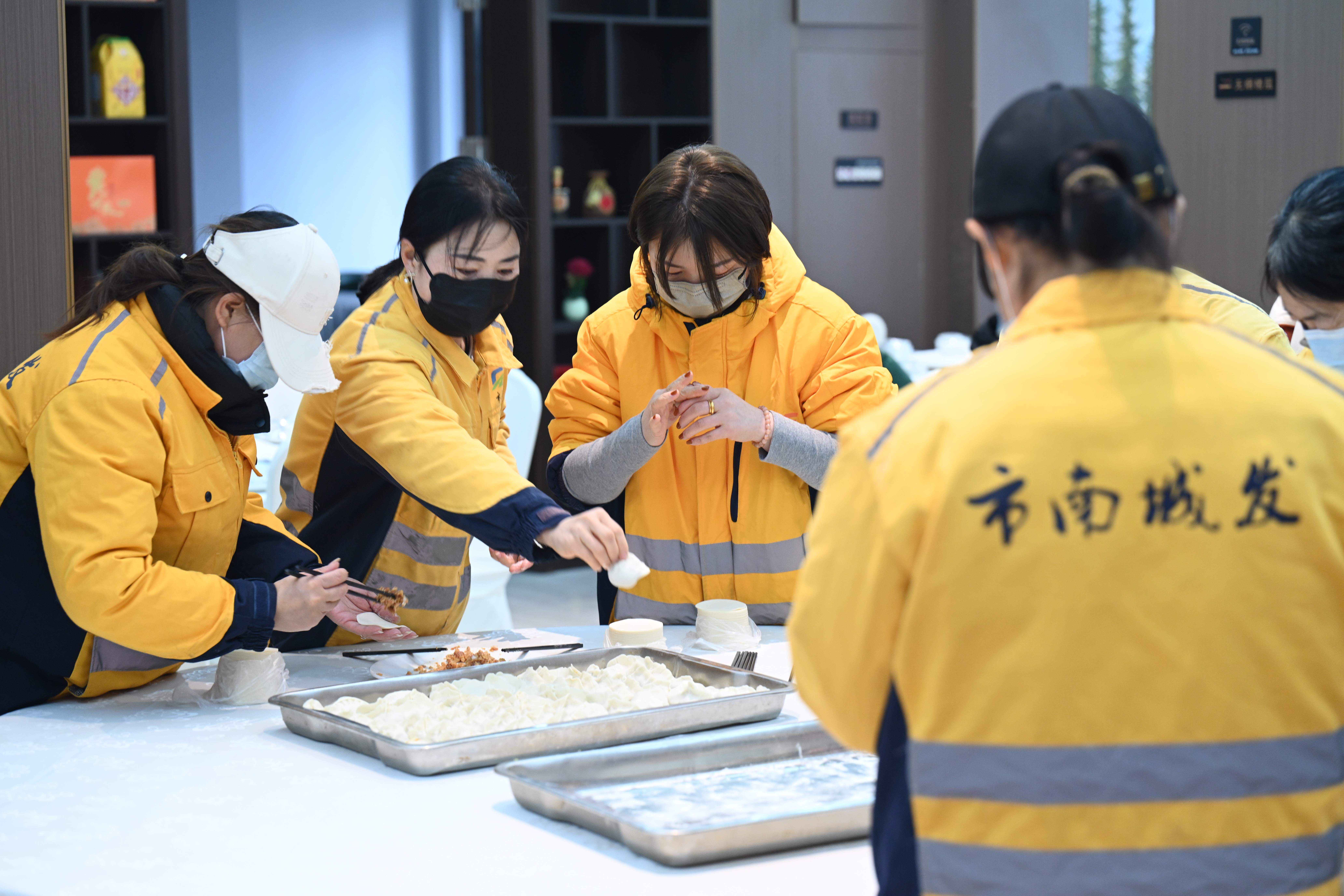 青岛市南区金湖路街道这场饺子宴,把新春暖意送给城市美容师~ 擀出团圆的形状,裹紧关爱的鲜香,2月10日,由青岛地质学术交流中心(石广酒店)主办,市南区城发公司、徐州路社区、牧传承乳业协办,市南区总工会、金湖路街道办事处、市南区社区教育办公室共同指导的金湖路街道“情暖环卫・饺香迎春——致敬城市美容师”主题活动在青岛地质学术交流中心(石广酒店)里圆满举行!为表达对环卫工作者的尊重与关爱,传递街道的关怀与敬意,现场共邀请60余名“城市美容师”、外卖小哥与街道工作人员、社区志愿者欢聚一堂,共同体验了一场别开生面、充满温情的迎春盛会。