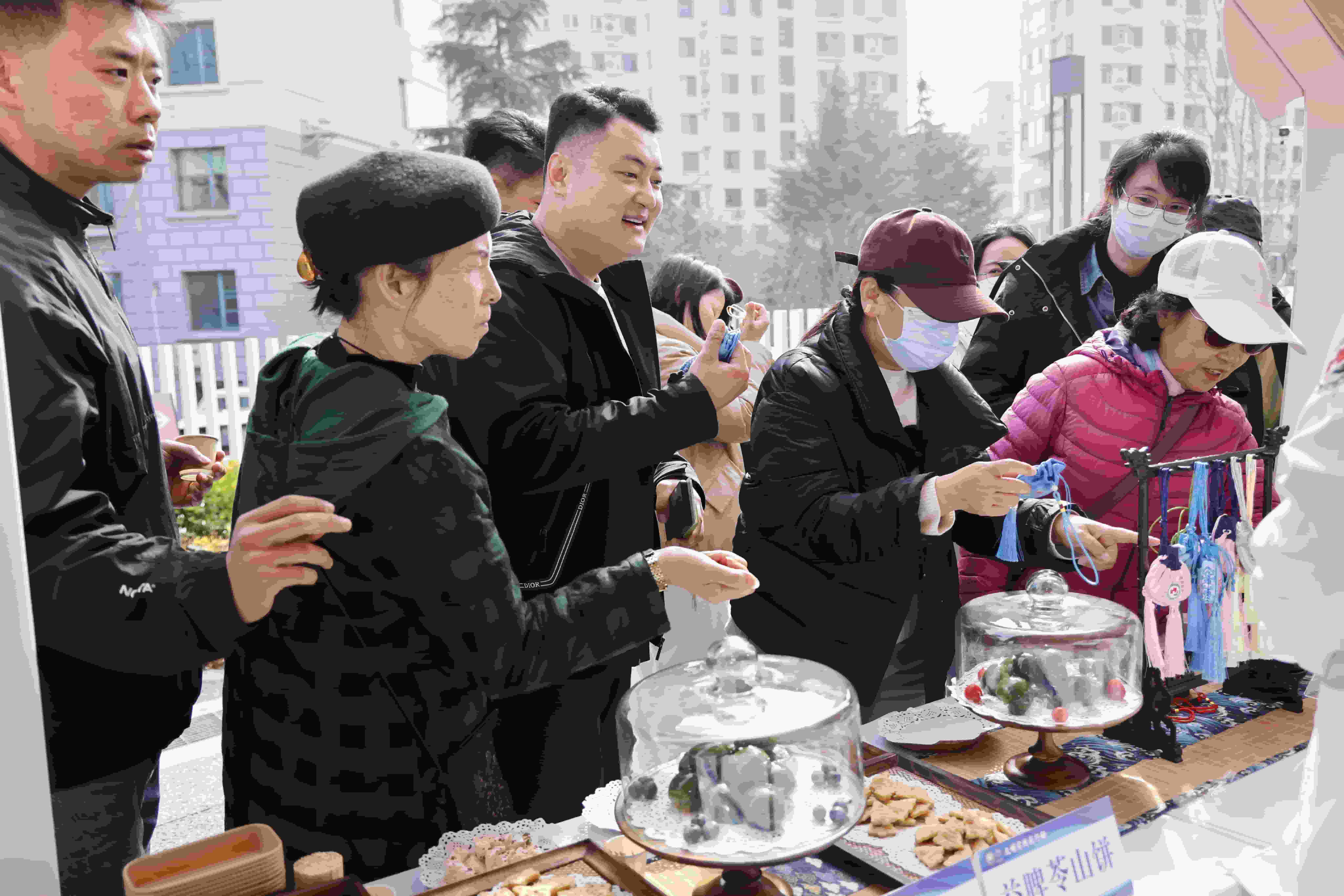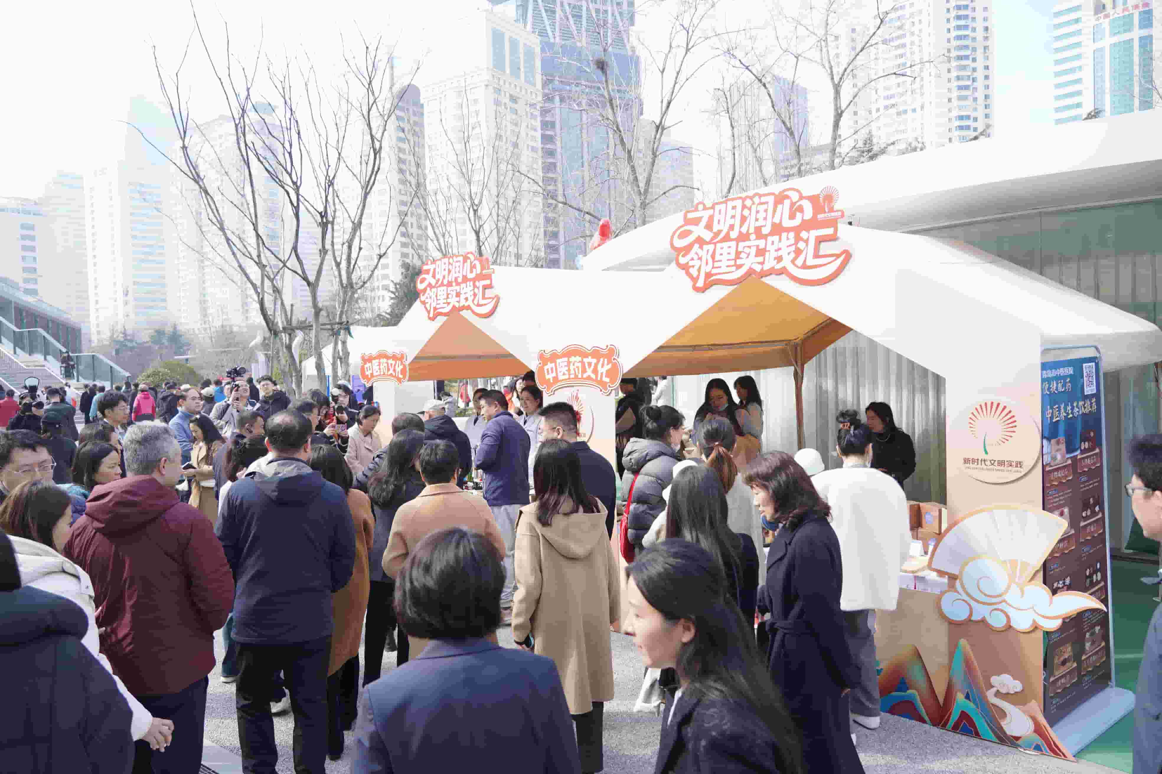 漫步海岸书院沿路,文明实践市集热闹开张,三大类10个摊位各具特色,吸引众多市民驻足体验。非遗类摊位尽显匠心传承,古琴悠扬、剪纸传神、书法绘画笔走龙蛇,掐丝珐琅、螺钿、宋锦、绒花等传统手工艺现场展示,中药手串、香囊制作让市民近距离感受中华优秀传统文化的独特魅力。政策宣传类摊位服务贴心,工作人员面对面讲解惠民政策,把“大道理”转化为“家常话”。餐饮类摊位升腾烟火气息,特色小吃香气四溢,让文明实践更有生活质感。海岸书院室内空间同步开启书院暖“医”站·中医便民体验活动,市卫生健康委员会邀请岛城知名中医专家团队开展义诊服务,让群众在家门口享受优质医疗资源。