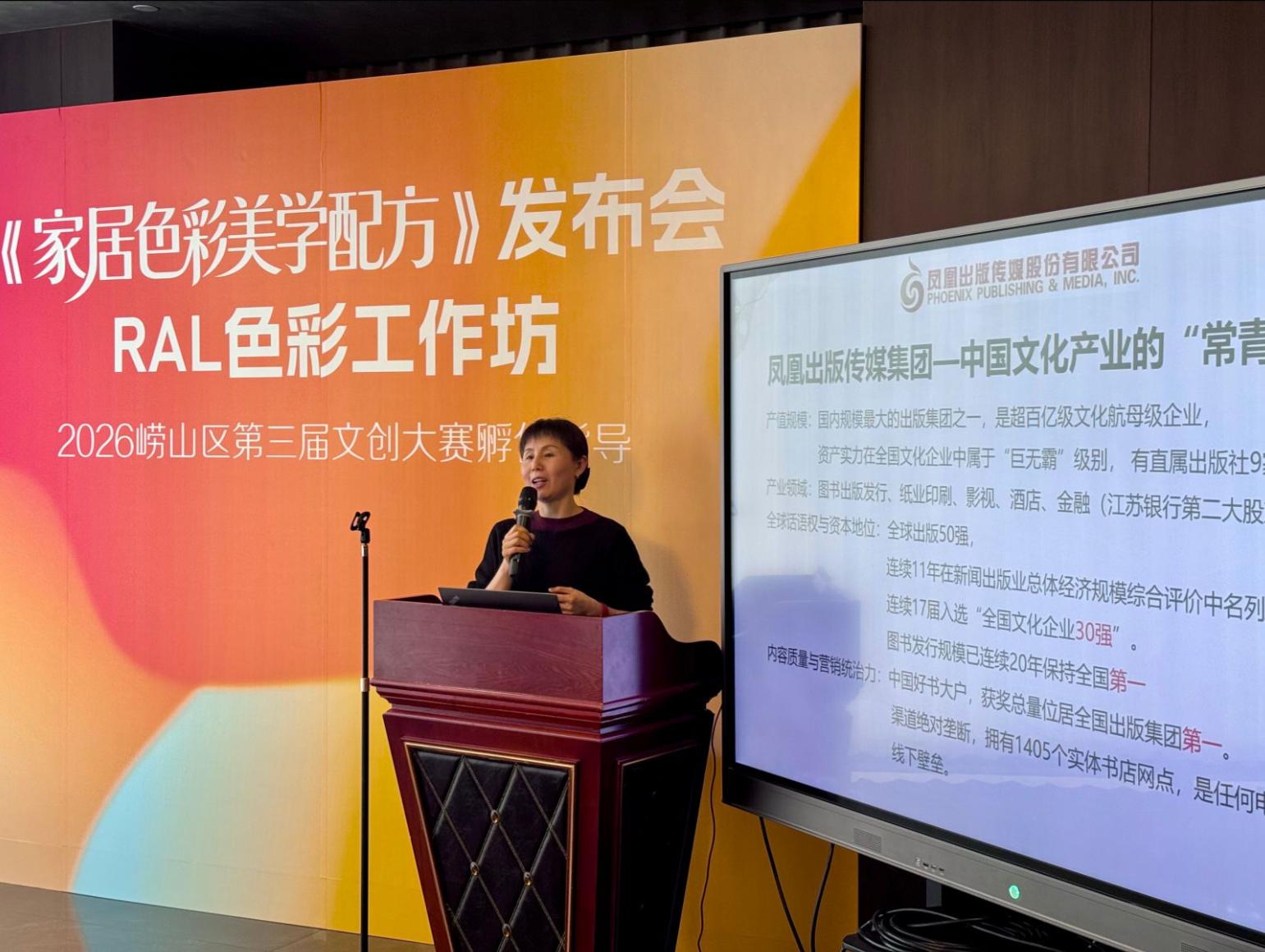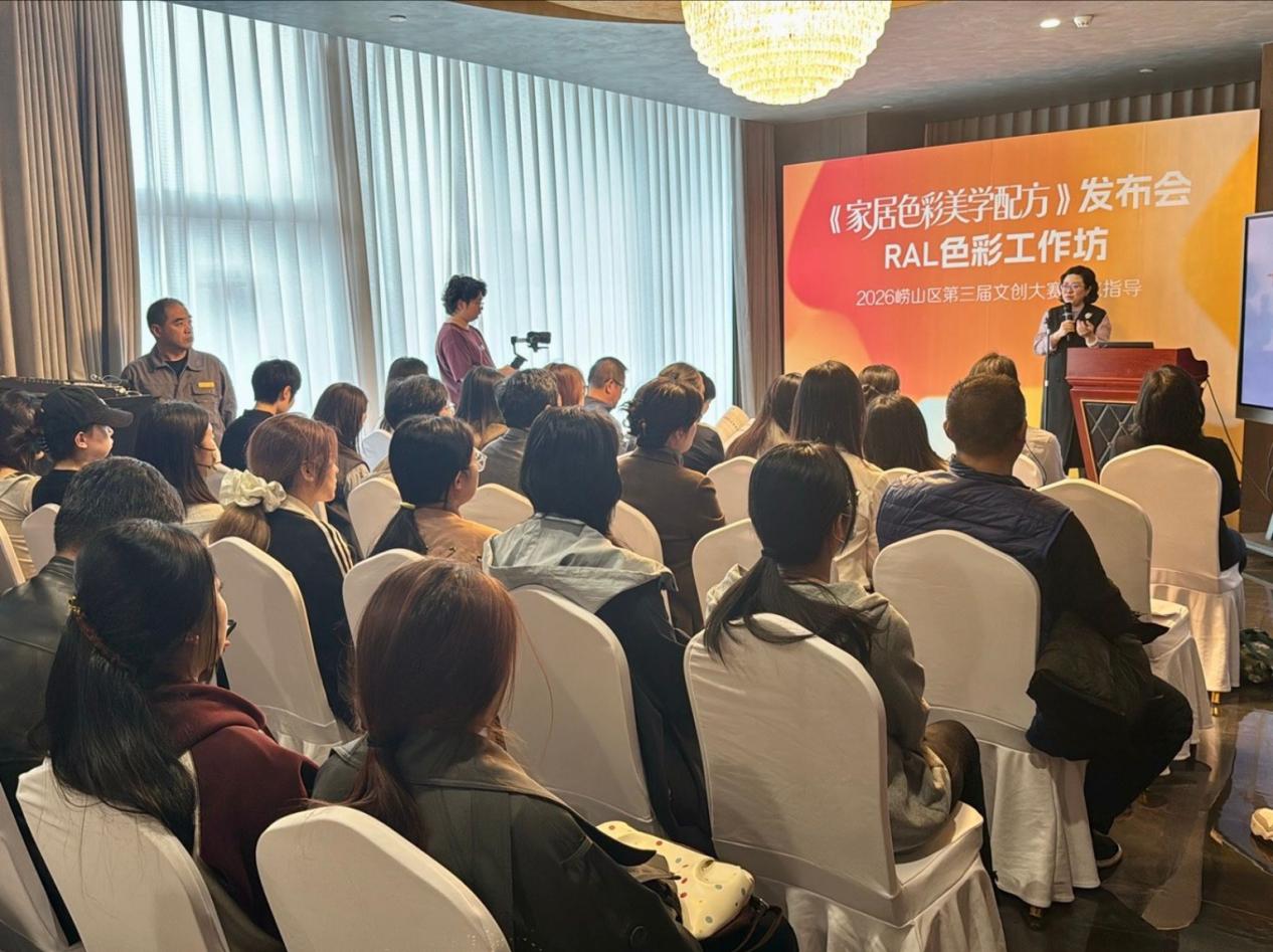 4月16日,《家居色彩美学配方》发布会暨RAL色彩工作坊体验活动在青岛若七酒店举行。本次活动汇聚出版、色彩、家居材料等领域嘉宾,围绕家居色彩美学、生活方式表达及色彩产业落地等内容展开,呈现色彩在当代生活中的多重价值,并释放出专业色彩体系落地青岛、扎根崂山的积极信号。同时,活动还面向“山情海韵 创见未来”崂山区第三届文创大赛选手开展创意指导与孵化,助力本土文创创意提升,为大赛选手提供专业美学与设计思路支持。