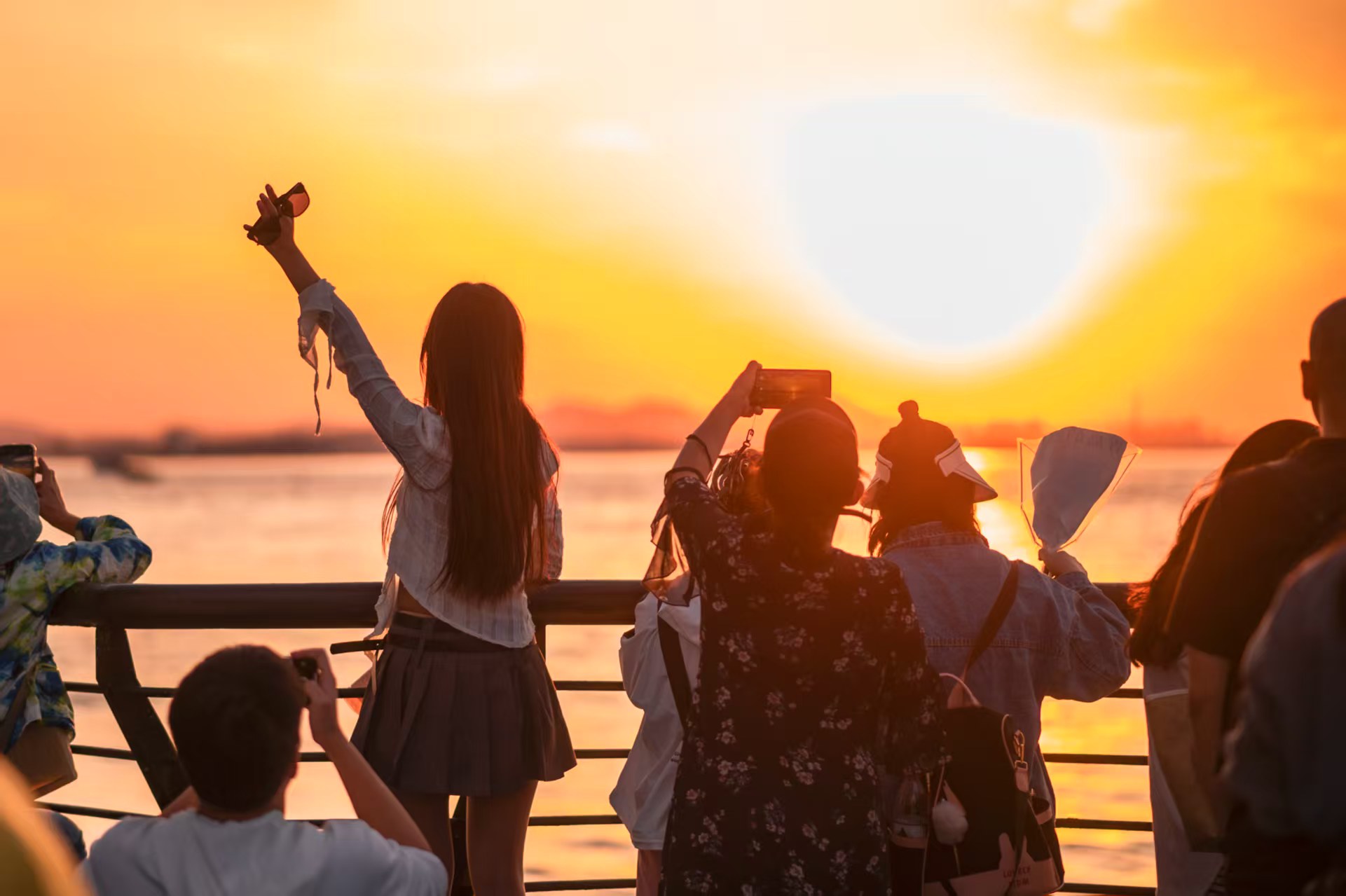 2025年底,一场以“橘子海”为主题的迎新派对在金茂湾东广场引爆社交网络。夕阳将海面染成橘子汽水般的暖橙色,歌手在台上轻轻弹唱,人们在草坪上席地而坐,海风裹挟着咖啡香与笑声。这种“微醺的海、微凉的晚风、温柔的声线”的组合,让无数“打工人”感叹:原来下班后的生活可以“躺平”。
