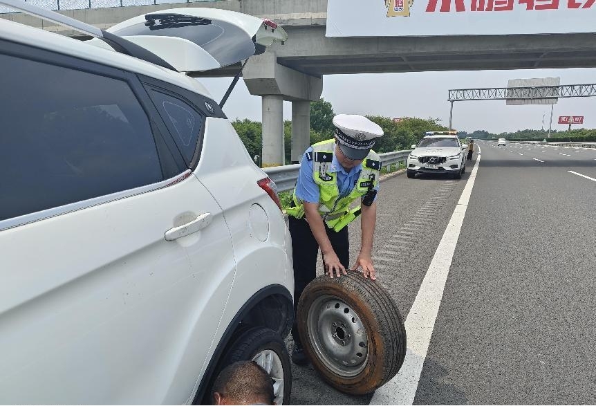 高温“烤”验显担当、高速交警热心帮忙换胎