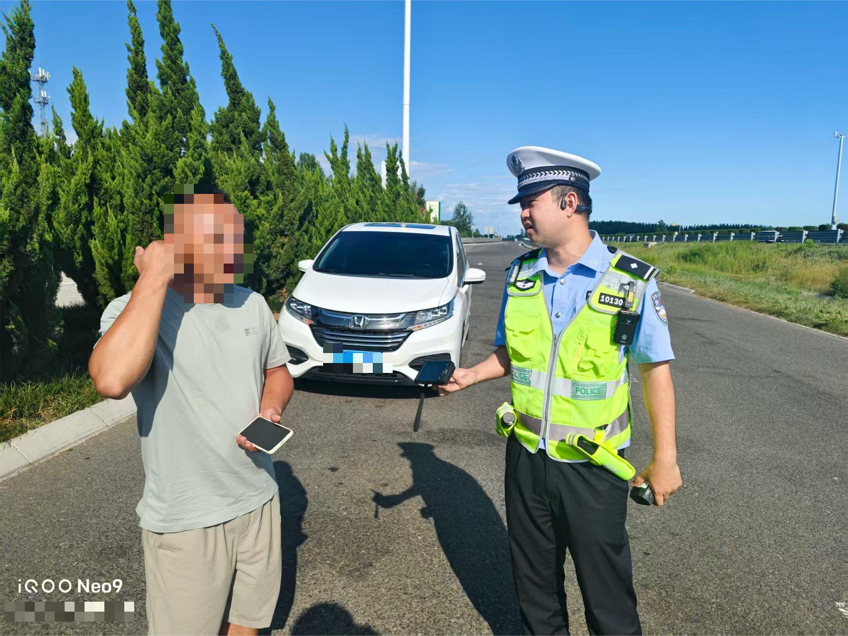 高密大队巡逻民警现场处理高速公路违法停车行为