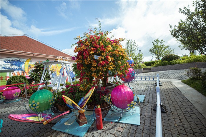 金沙滩啤酒城为打造花的海洋,在城内种植了300余种、近2万平米的欧月、绣球等时令花卉,创意设置24组造型花艺组合、创意花卉场景,织就“花开全城、人游画中”的锦绣美景。