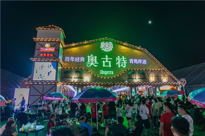 7月16日-8月8日,第31届青岛国际啤酒节在青岛西海岸新区金沙滩啤酒城举行。在东啤酒文化广场,青岛啤酒打造了啤酒大篷双子星——青啤1903大篷和奥古特大篷。