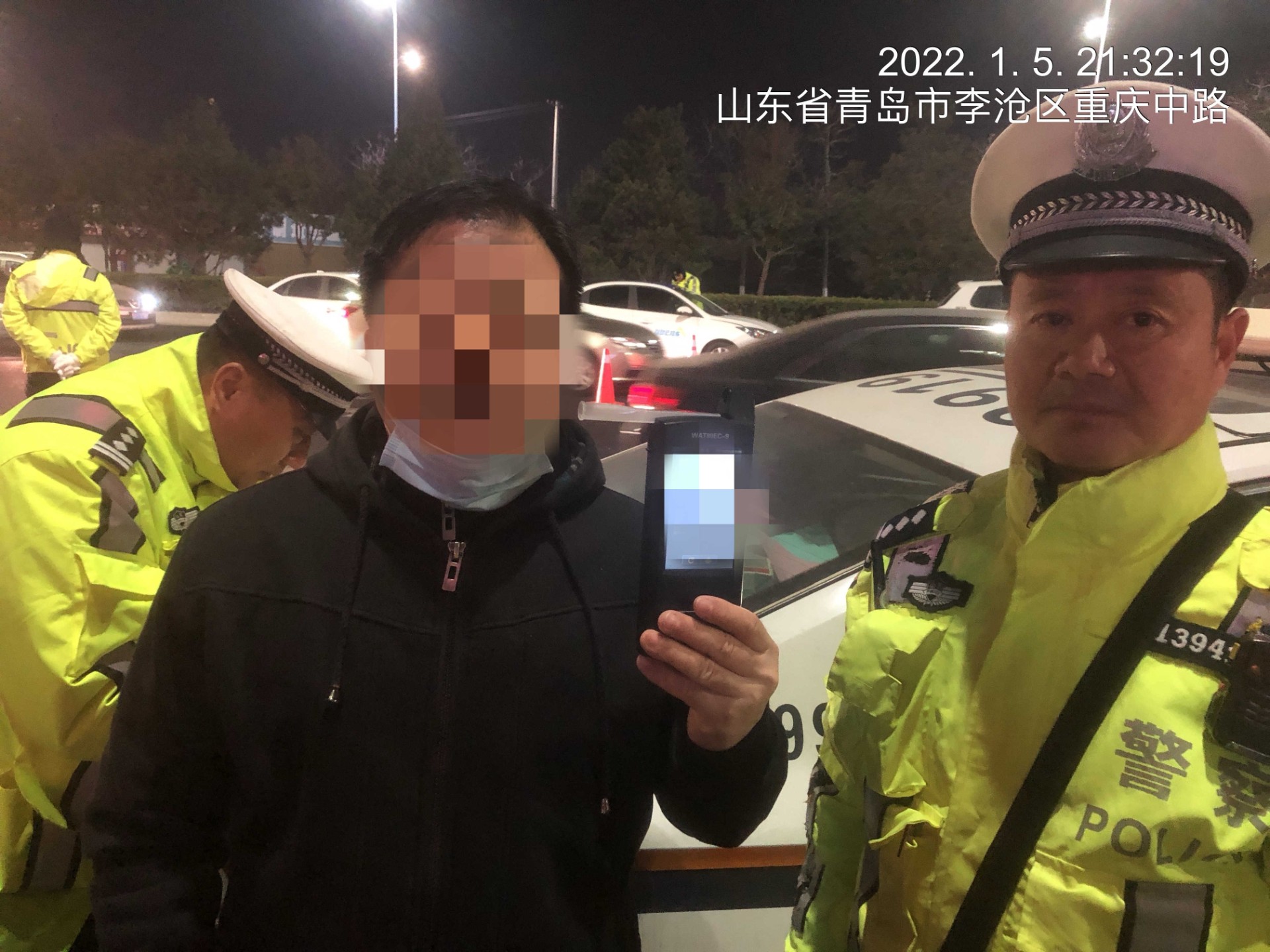 2022年1月5日晚09:20左右,青岛李沧交警在重庆中路延寿宫路路口设点夜查。一辆棕色SUV汽车自南向北方向从重庆中路辅道拐入最左侧车道,短距离来回变道了两次之后,最终又回到最左侧车道。民警见状立即上前示意该车前方的车辆停车,令这辆棕色SUV被前后车辆“夹在”当中,无法继续前行。民警上对该车驾驶员司机进行酒精预检。尽管再三提示配合检测的方法是“吹气”,可这名中年男性驾驶员还是一连几次使用“哈气”的方式,最终,检测仪上红色的提示显示该司机已经涉嫌酒驾。民警请驾驶员下车接受进一步检测。