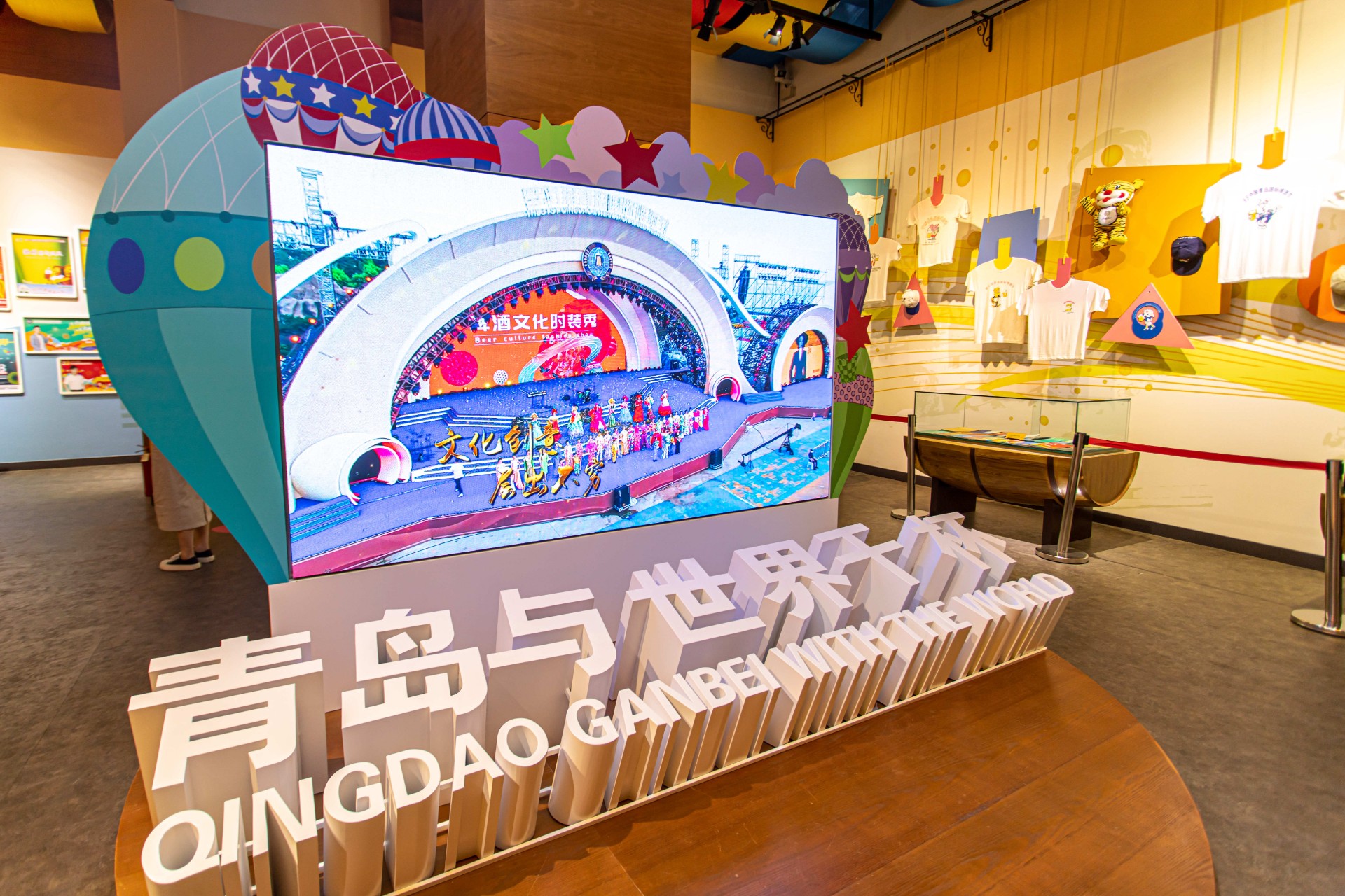 第四展厅——重温与激励,呈现的是青岛国际啤酒节的历程展。带游客回望31年的恢宏节日历史,盘点31年的诸多宝贵物存,一摞摞办节之初的油印文件,一张张铭刻岁月的参节门票,一件件穿越时光的多彩节服,一份份与节共舞的伴手之礼,一盏盏盛满情谊的特色酒杯……都在真实记录着一路走来的沧桑履历,都在精心梳理着啤酒盛会独有的文化遗存,都在真切激励着不忘初心的佳节使命。