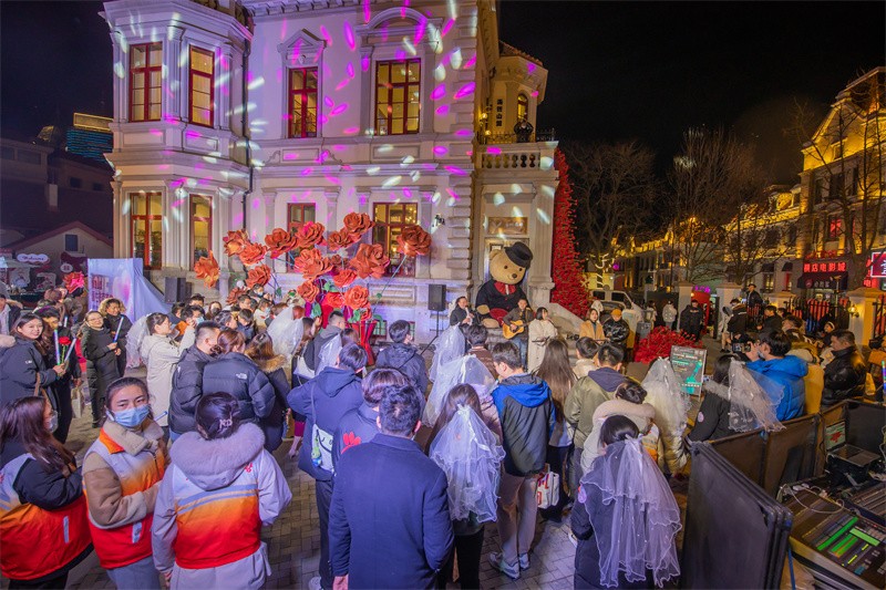 2月14日晚6点,“海誓山盟 爱在市南等你”情人节活动在安娜别墅拉开帷幕。99对新人相聚在青岛浪漫爱情文化地标—安娜别墅,共同许下海誓山盟的爱情誓言。