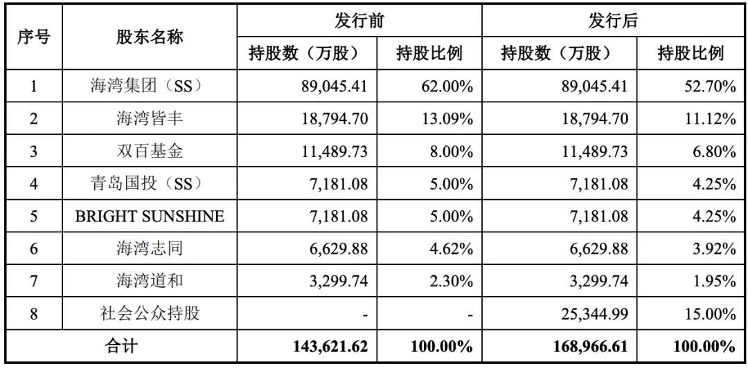 两个月后,海湾化学成功引入“国改双百发展基金”和一家外资战略投资者,释放股权比例13%,员工持股平台共持有海湾化学20%股权。原先100%青岛国资控股的股权结构改变,海湾化学成功实现上市前的混改,成为继青啤、双星、海信后,青岛第四家完成混改的国有企业。