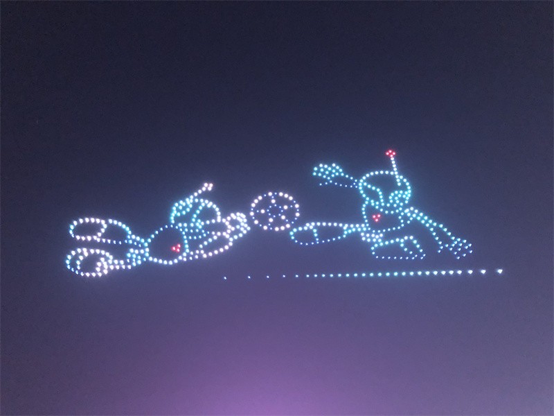在电动水翼板、水上飞人、水上摩托艇和“王者与你同行”cosplay等暖场走秀后,电子单车舞蹈、电竞足球、赛车电竞、激光街舞等表演让现场市民和与会嘉宾大饱眼福。500架无人机最后亮相浮山湾,通过展示帆船之都、足球之城、马术、击剑、骑行和VR运动等虚拟场景,让现代高科技和时尚体育元素有机结合,特别是“活力海洋之都 精彩宜人之城”“祝2023数字体育运动会圆满成功!”“体育强则中国强 ”“中国你是我的骄傲”等组合字样逐一呈现,引发了现场观众们的共情共鸣。