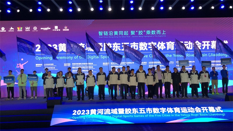 青岛广电10月24日讯 今晚,作为2023中国·青岛时尚体育产业大会重要板块的2023年黄河流域暨胶东五市数字体育运动会在青岛奥帆中心拉开帷幕。国家体育总局水上运动管理中心副主任苏科,山东省体育局局长乔云萍,青岛市人大副主任、市总工会主席张建刚,青岛市政府副市长赵胜村,青岛市政府副秘书长王东翔,青岛市体育局党组书记、局长蔡全记等领导嘉宾以及国家体育总局有关领导、黄河流域和胶东五市体育部门及国内外相关体育行业嘉宾参加开幕式,王东翔致欢迎词。