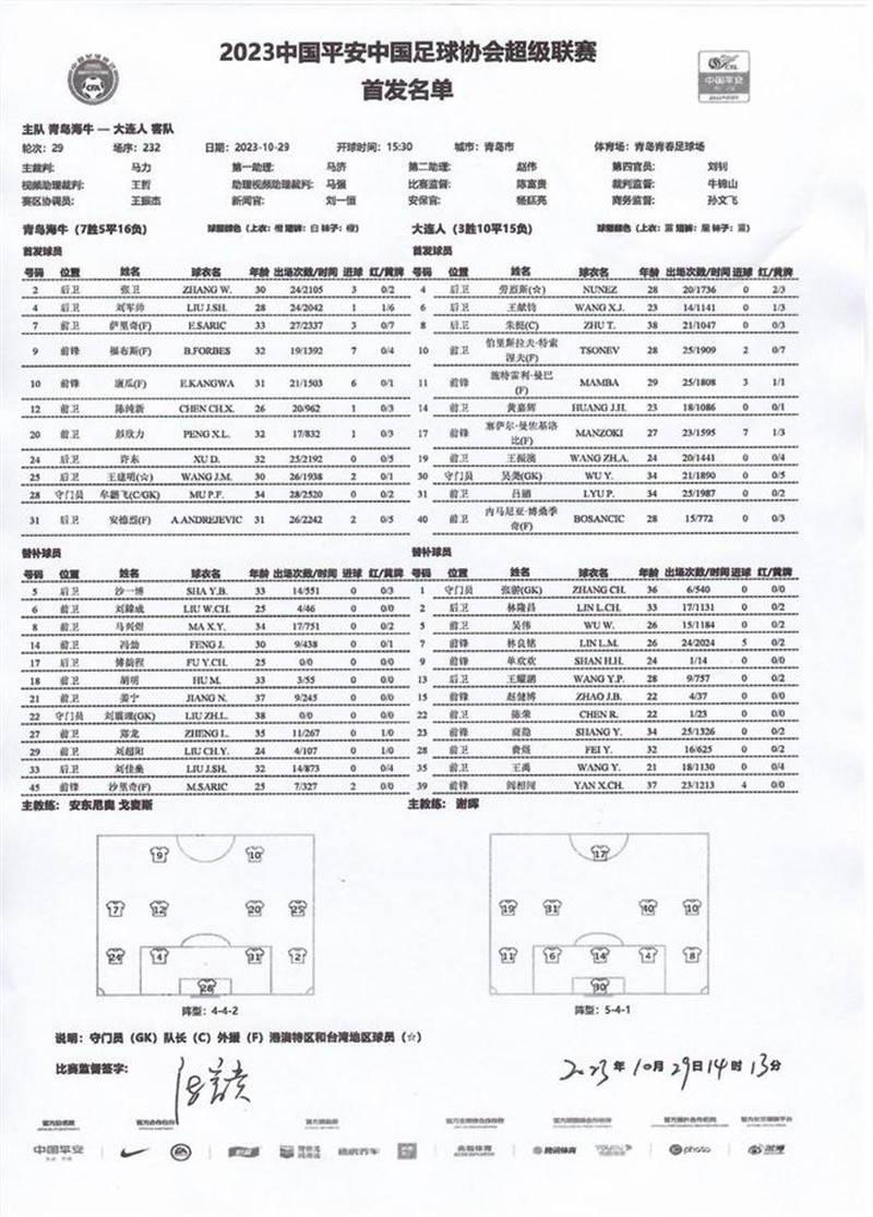这是青岛海牛队本赛季中超联赛的最后一个主场比赛,海牛也希望在主场能够赢下比赛,用胜利为主场赛事收官。首发阵容上,青岛海牛依然派上了绝大多数的主力:刘军帅、安德烈、许东坐镇三中卫,王建明和张卫兵分两翼;彭欣力、萨里奇坐镇中场,陈纯新和康瓜出任边翼卫,福布斯顶在最前面。