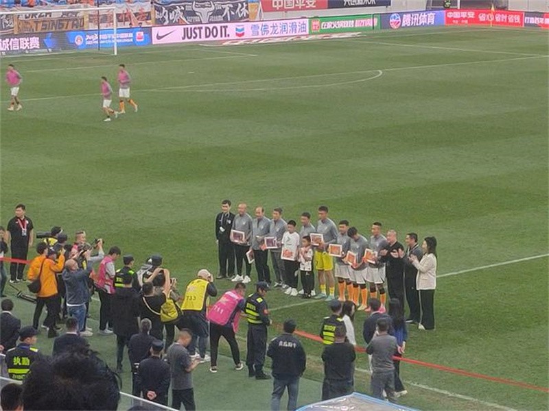 中场休息时,青岛海牛俱乐部举行了30年最佳阵容颁奖仪式,矫春本、汤乐普、郭亮、刘震理、姜宁、郑龙、沙一博等曾经或者至今仍在海牛效力的名将领取了最佳阵容的奖杯和30年纪念相册。