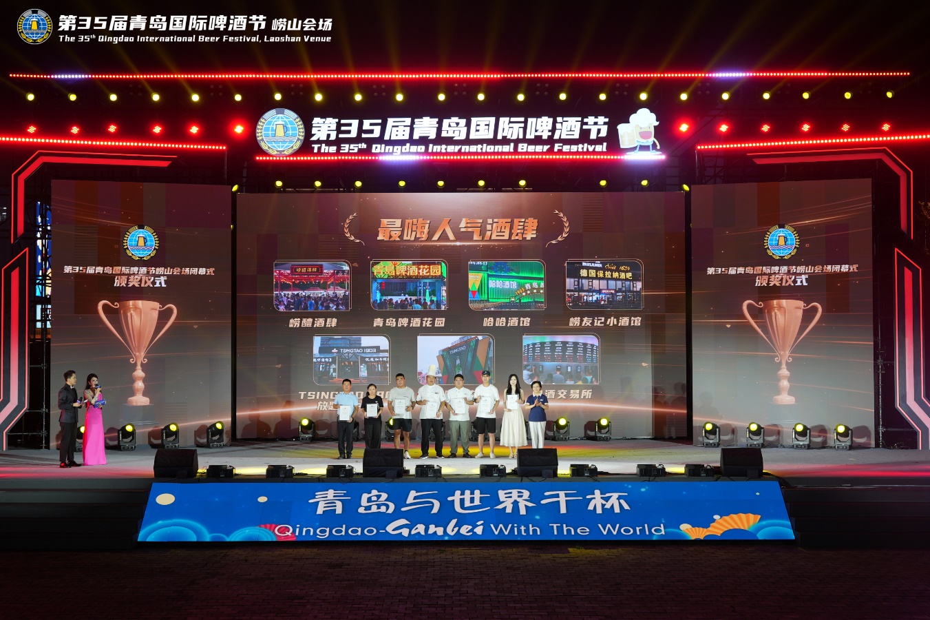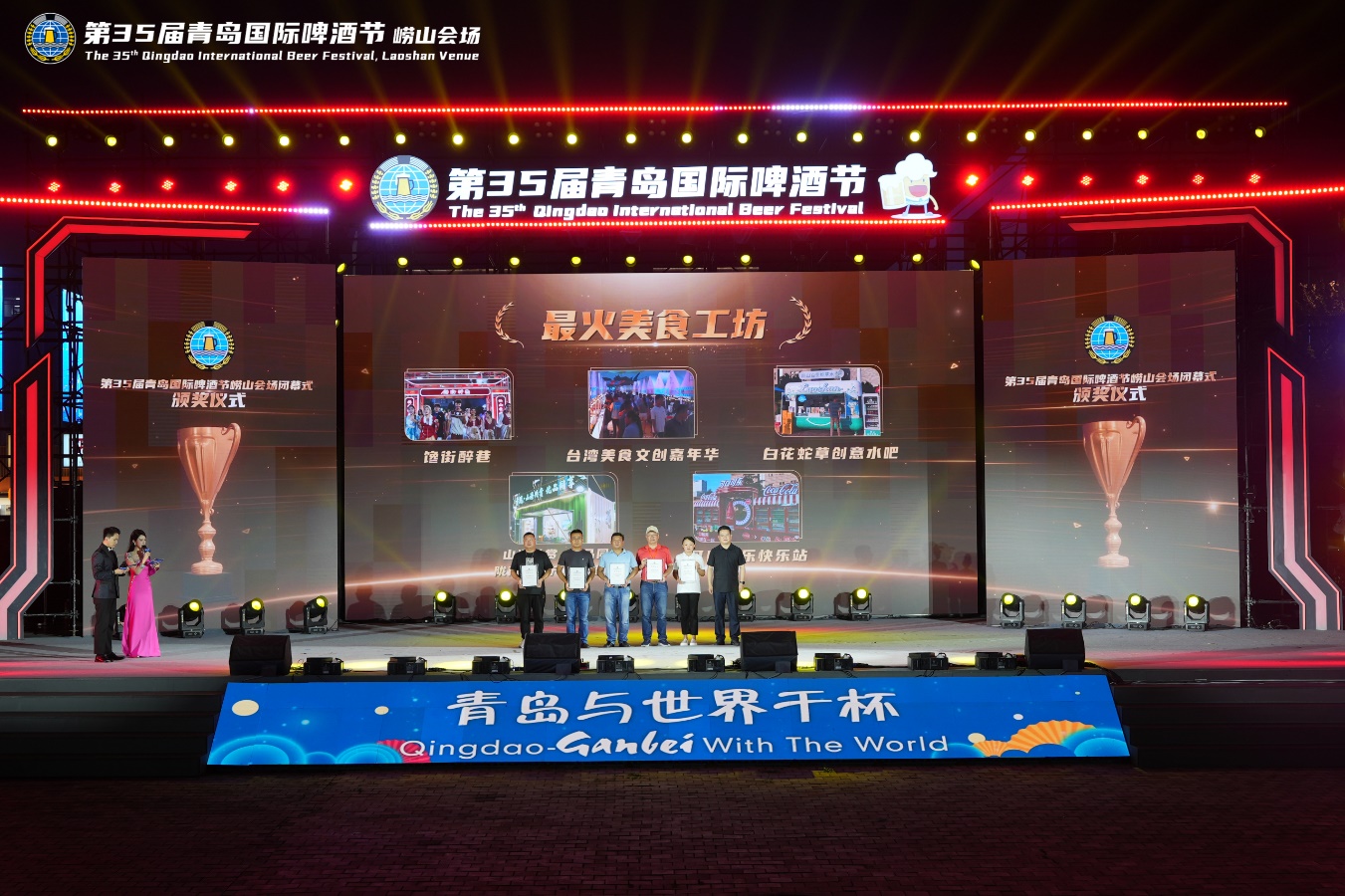 随后,通过两轮颁奖环节,最燃时尚先锋、热心参节达人、最火美食工坊和最嗨人气酒肆等一系列荣誉称号依次揭晓,在回顾啤酒节期间精彩体验的同时,向所有真情奉献的参与者们致以崇高敬意!