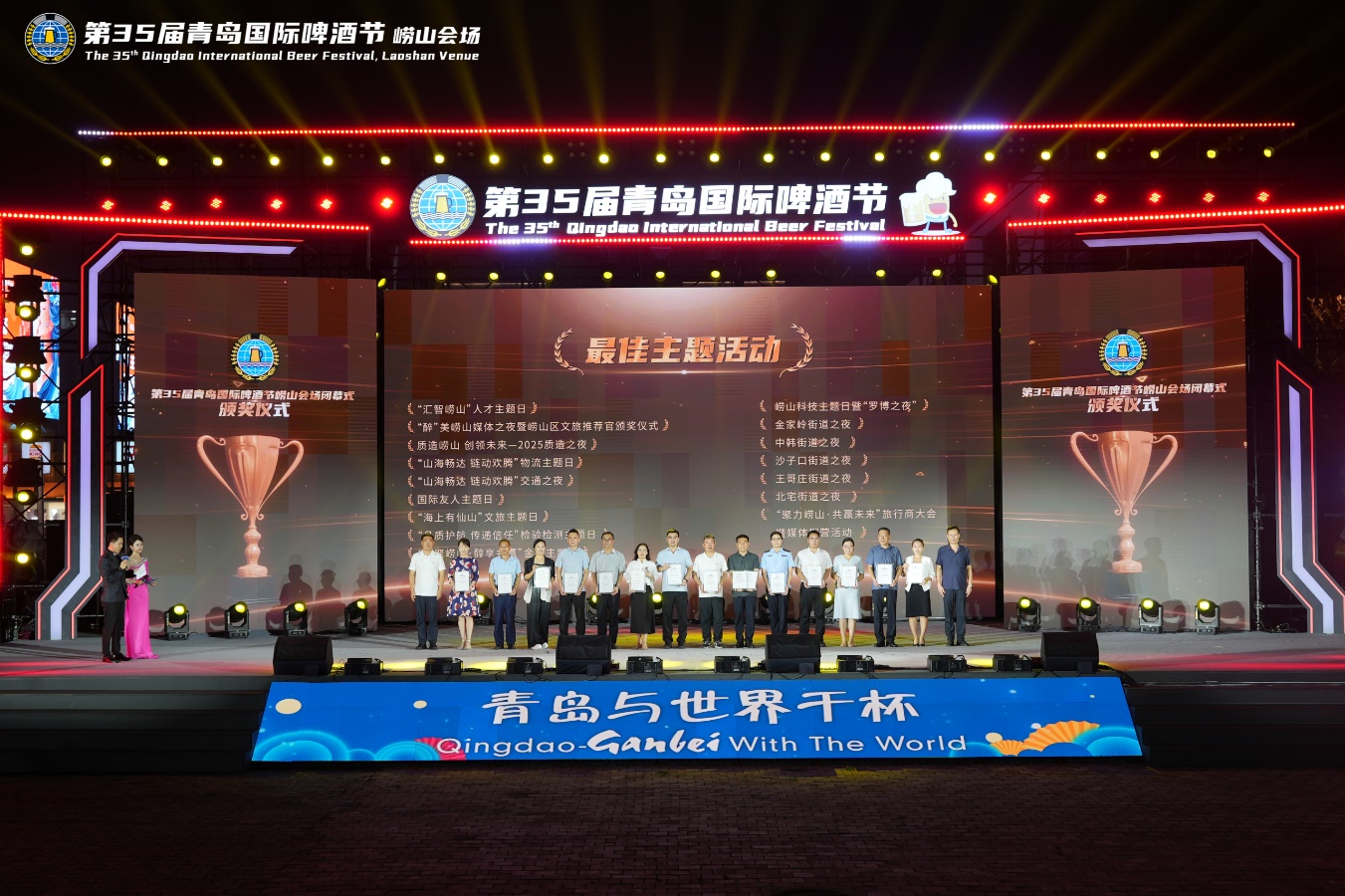 啤酒节期间,崂山会场举办了涉及人才、科技、金融、交通等多个领域,涵盖全区各街道、各社会团体的16场主题日活动,各承办单位精心策划,用异彩纷呈的活动构建起展现城市发展活力、创新动力和人文魅力的多维窗口,充分凸显了青岛国际啤酒节赋能“产城共舞”的重要价值。闭幕式颁奖环节特别设置了“最佳主题活动”奖项,并通过集锦视频共同回顾主题日活动精彩瞬间,重温了点亮崂山魅力的高光时刻。