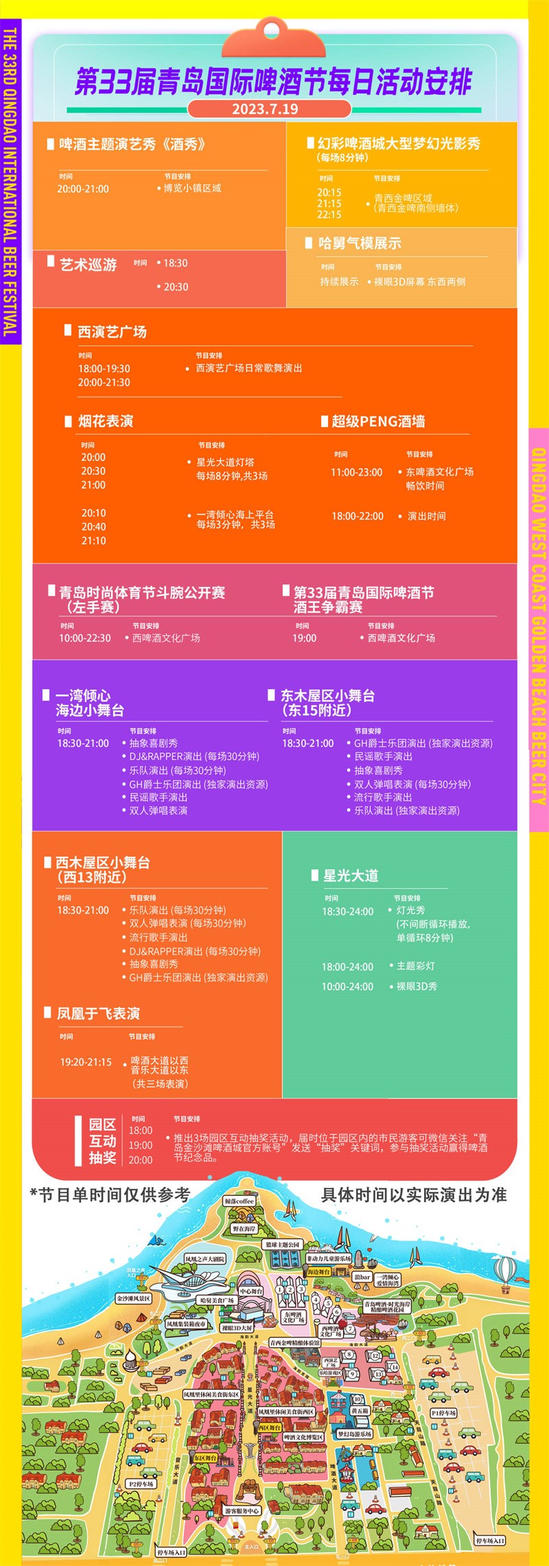 2023-07-20第33届青岛国际啤酒节崂山会场将于7月21日至8月20日在世纪广场啤酒城盛大启幕,届时,现场将举办开幕式、艺术巡游、亲子娱乐等400余场活动,在全域组织夜间文创市集、大型演唱会等丰富多彩的啤酒节主题活动,打造啤酒节狂欢,燃爆盛夏之夜。