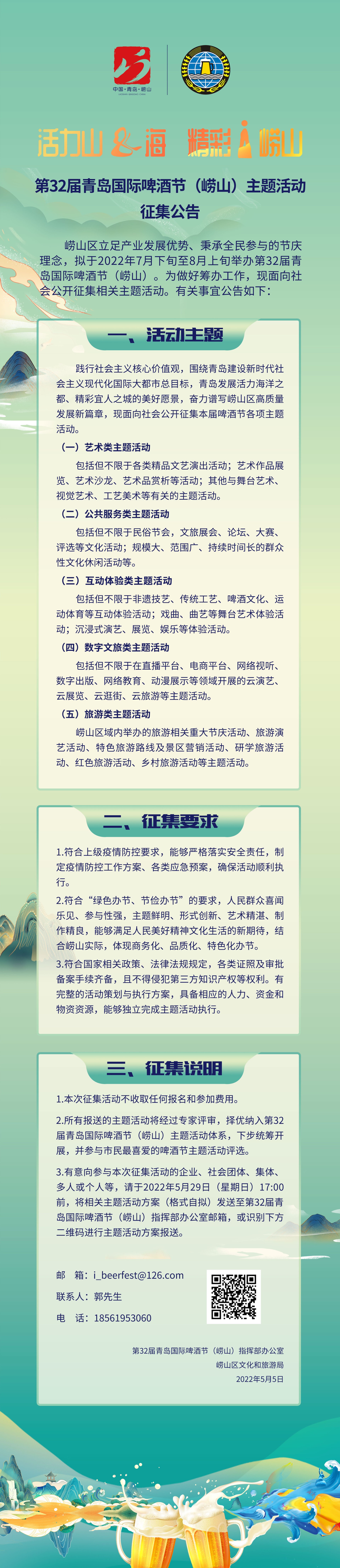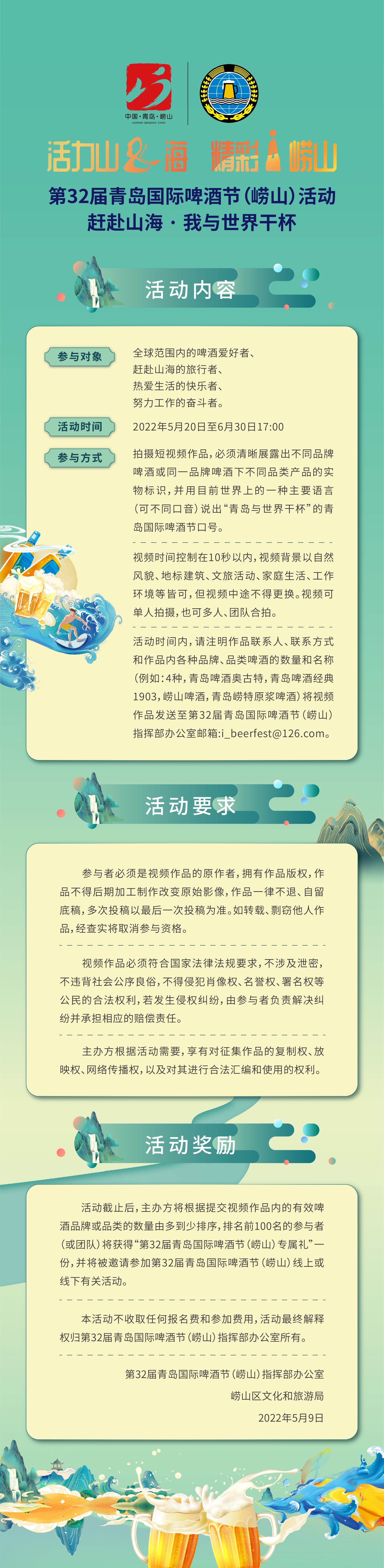 活力山&海 精彩i崂山 第32届青岛国际啤酒节(崂山)主题活动征集公告