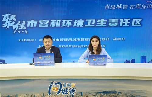 1月12日上午,星期三问城管网络版节目如期举行,本期节目聚焦市容和环境卫生责任区主题,青岛市城市管理局城市管理协调处处长孙凯升作为上