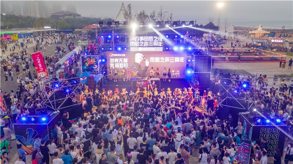7月18日晚,在第31届青岛国际啤酒节现场,青岛凤凰之声大剧院喷泉广场传来了《tell me》的乐曲声,引得不少啤酒节游客驻足欣赏。