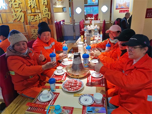 寒冬有爱、雨雪传情。1月10日是传统的腊八节,青岛市北区长春路上的东镇老火锅迎来了一批特殊的客人——身穿橙色工装的环卫工人。10时30分