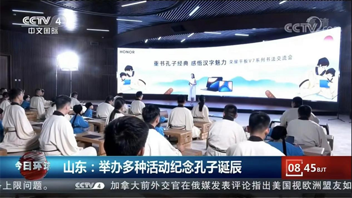 9月28日是我国古代伟大思想家、教育家孔子诞辰2572周年纪念日。当天在曲阜孔庙举办的各种纪念活动中,50孔学爱好者身着汉服,用平板电脑书