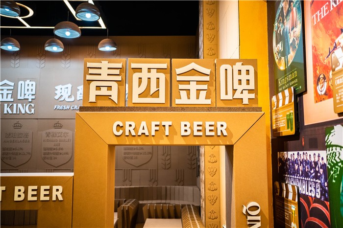 乘坐电梯到达“纵意人生”展厅,一面特殊的墙映入眼帘,在黑底墙面的衬托下,上千个圆形酒标跃入人眼,场面十分壮观。游客们可以走近欣赏每一个精美的酒标,并拍照留念。啤酒文化博物馆因为这面墙,成为了中国收藏啤酒酒标最多的博物馆。该展厅呈现出醇香的啤酒与电影、美食、足球等各类文化元素融合出的新文化,直观地体现了啤酒在大众生活中扮演的角色。