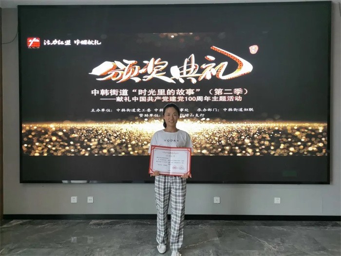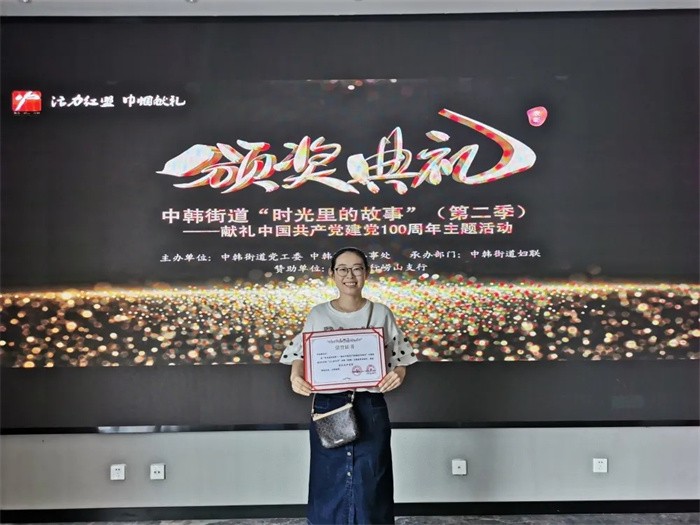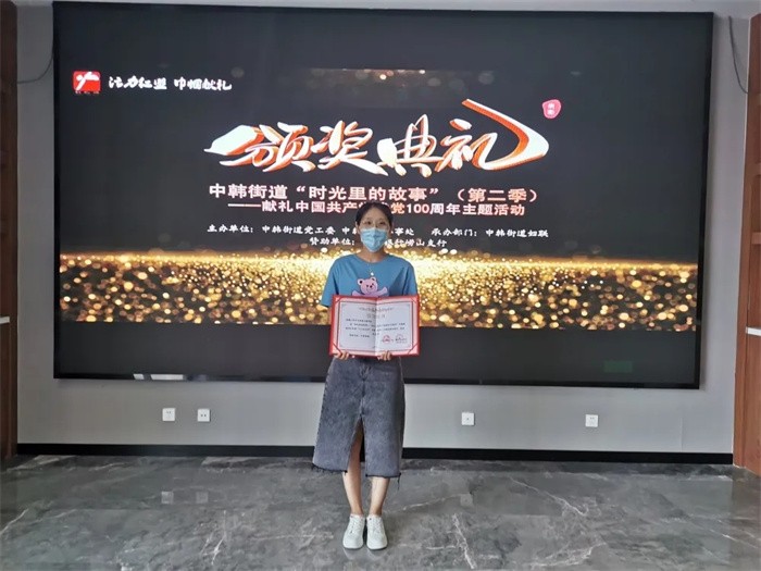 为大力发扬妇女在社会生活和家庭生活中独特的孺子牛、拓荒牛、老黄牛精神,带领家庭成员共同升华爱国爱家的家国情怀、建设相亲相爱的家庭关系、弘扬向上向善的家庭美德、体现共建共享的家庭追求,2021年上半年,青岛市崂山区中韩街道妇联开展了“时光里的故事——献礼中国共产党建党一百周年”主题活动,并得到了辖区企业、学校、社区等各行各业广泛响应、踊跃投稿。经过评审,共有22组作品脱颖而出,8月26日,中韩街道“时光里的故事”(第二季)主题活动颁奖仪式在街道办事处顺利举行。