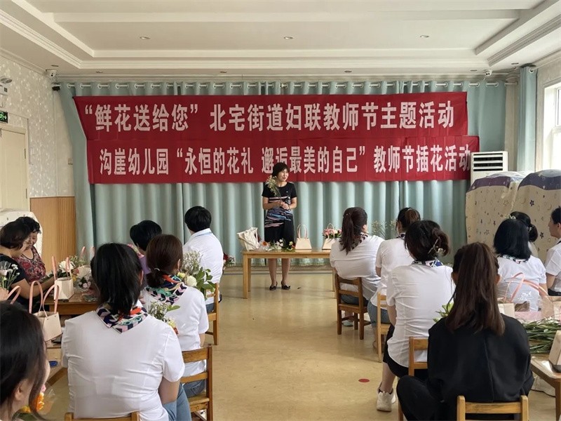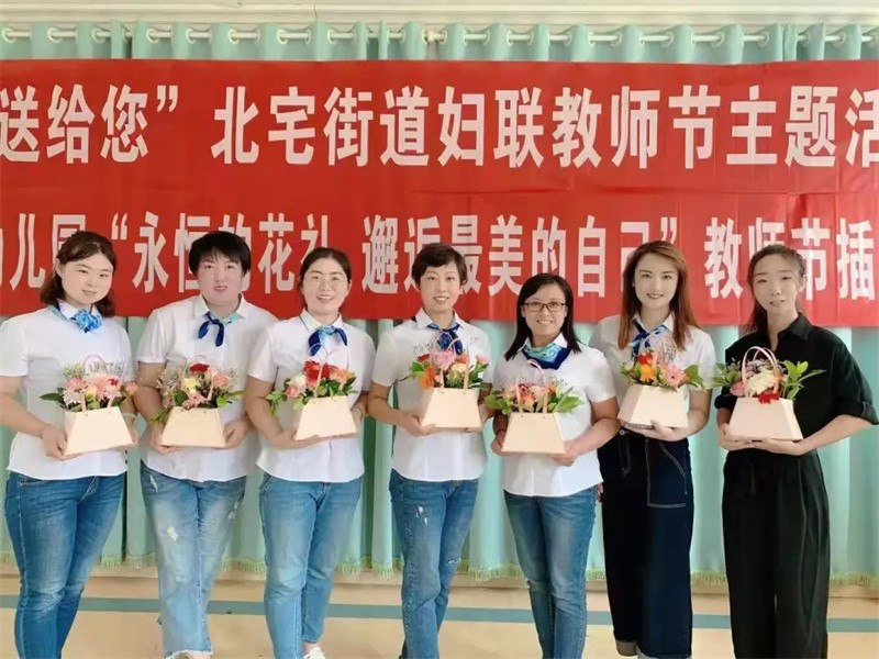 一年年斗转星移,一载载桃李芬芳。在第37个教师节来临之际,为弘扬尊师重教的优良传统,慰问辛勤工作的园丁,9月10日下午,青岛崂山区北宅街道妇联在沟崖幼儿园举办了“鲜花送给您”创意插花主题活动。